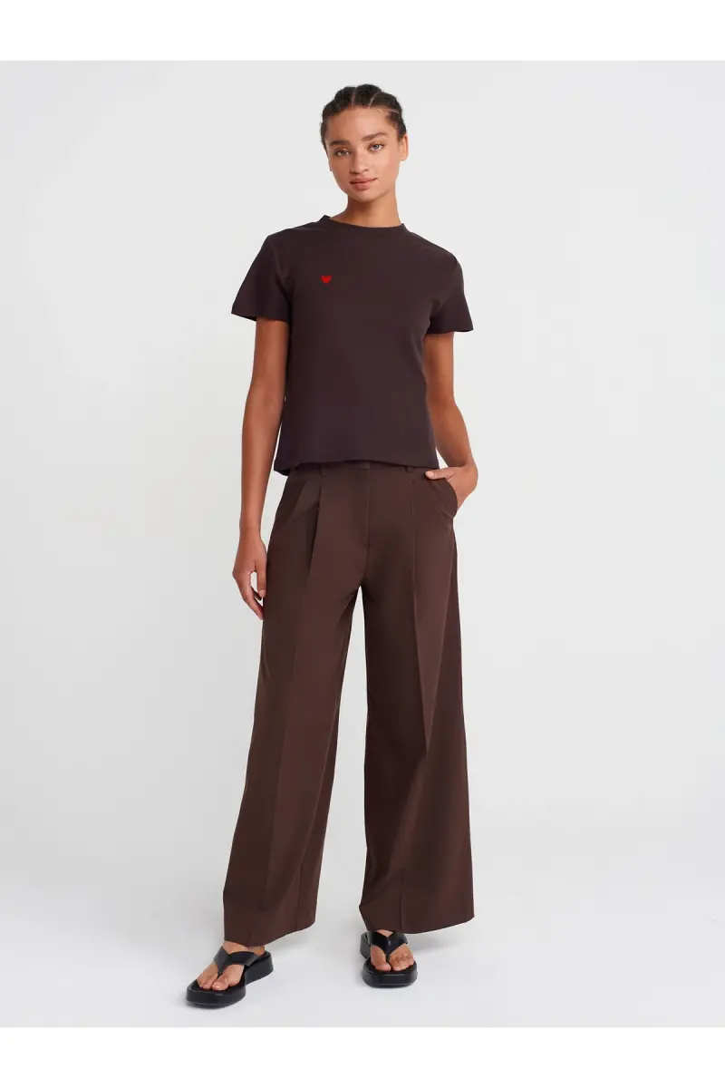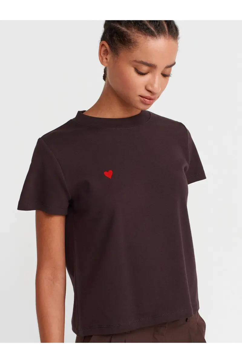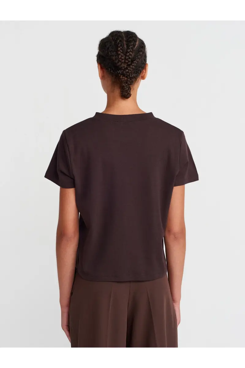 30584 Bisiklet Yaka Pamuklu T-shirt-Koyu Kahve-Kahverengi