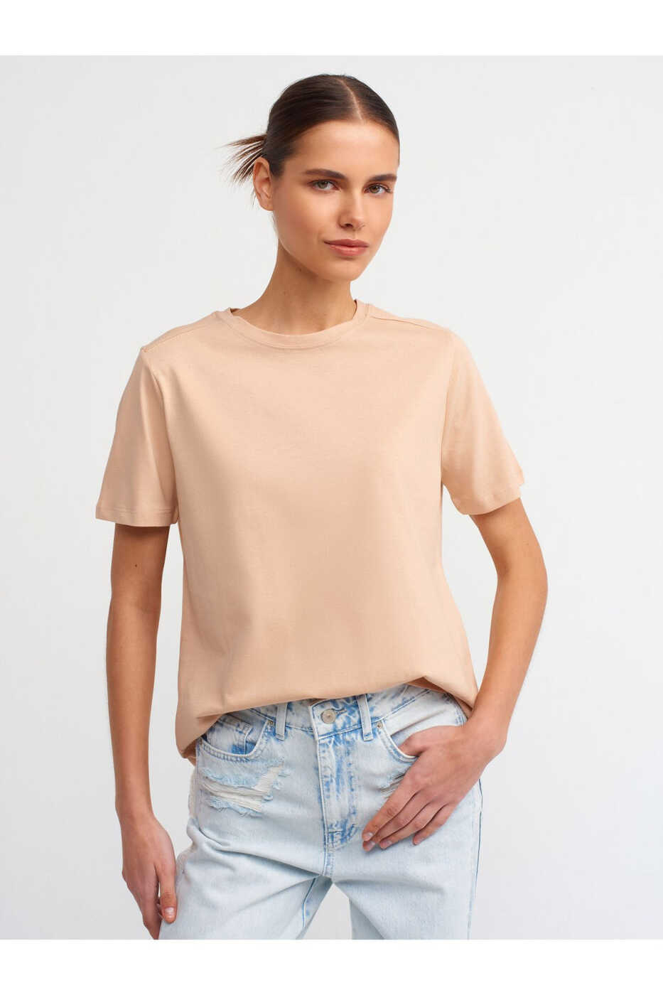 The 30740 Crew Neck Cotton T-shirt, a blend of comfort and style, will complete your everyday look and become an indispensable part of your wardrobe. Offering all-day comfort with its soft texture and breathable fabric, this T-shirt adds a stylish touch with its crew neck detail. The beige color will suit every style, and the 30740 Crew Neck Cotton T-shirt can be combined with jeans, shorts, skirts, and sneakers.