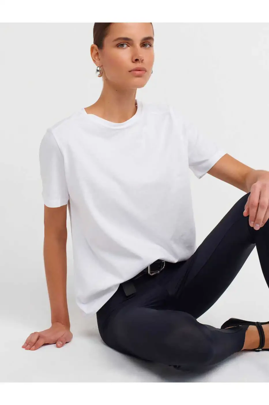 The white color of the 30740 Crew Neck Cotton T-shirt blends perfectly with any outfit, making it an indispensable part of your wardrobe. You can use this t-shirt in sporty, casual or elegant combinations, as it will adapt to any style.