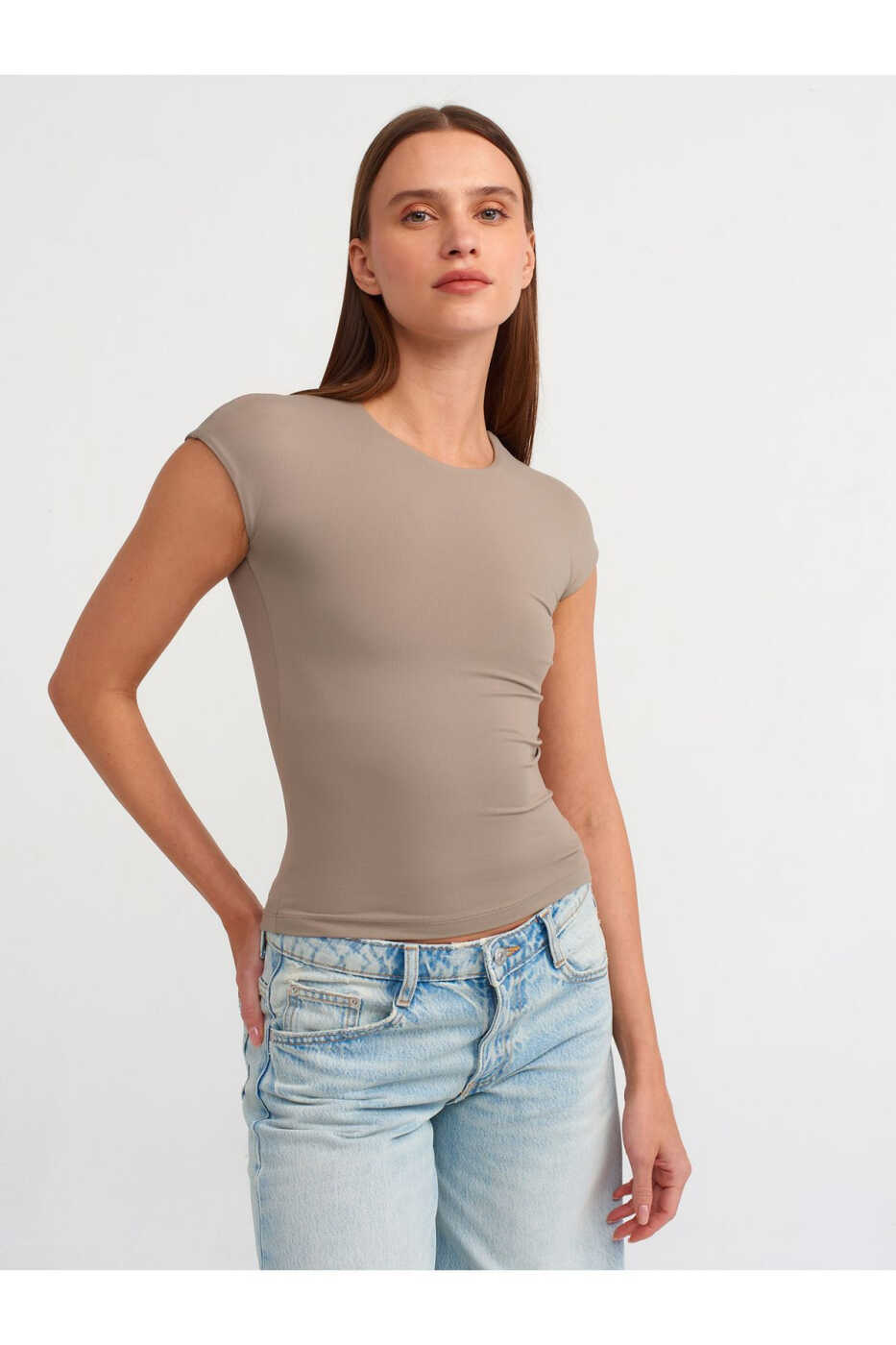 30856 Poliamid Futbolka - Vizon - Qulaylik va Uslub Birlashgan