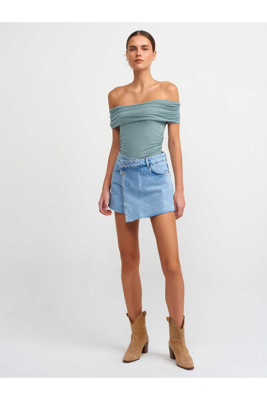 The 30902 Off-Shoulder Ruffle Top - Green is a perfect choice for an elegant and stylish look. Made from soft and comfortable fabric, this top is designed to fit all body types. Its off-shoulder design adds a feminine touch, making you look stunning in any setting.