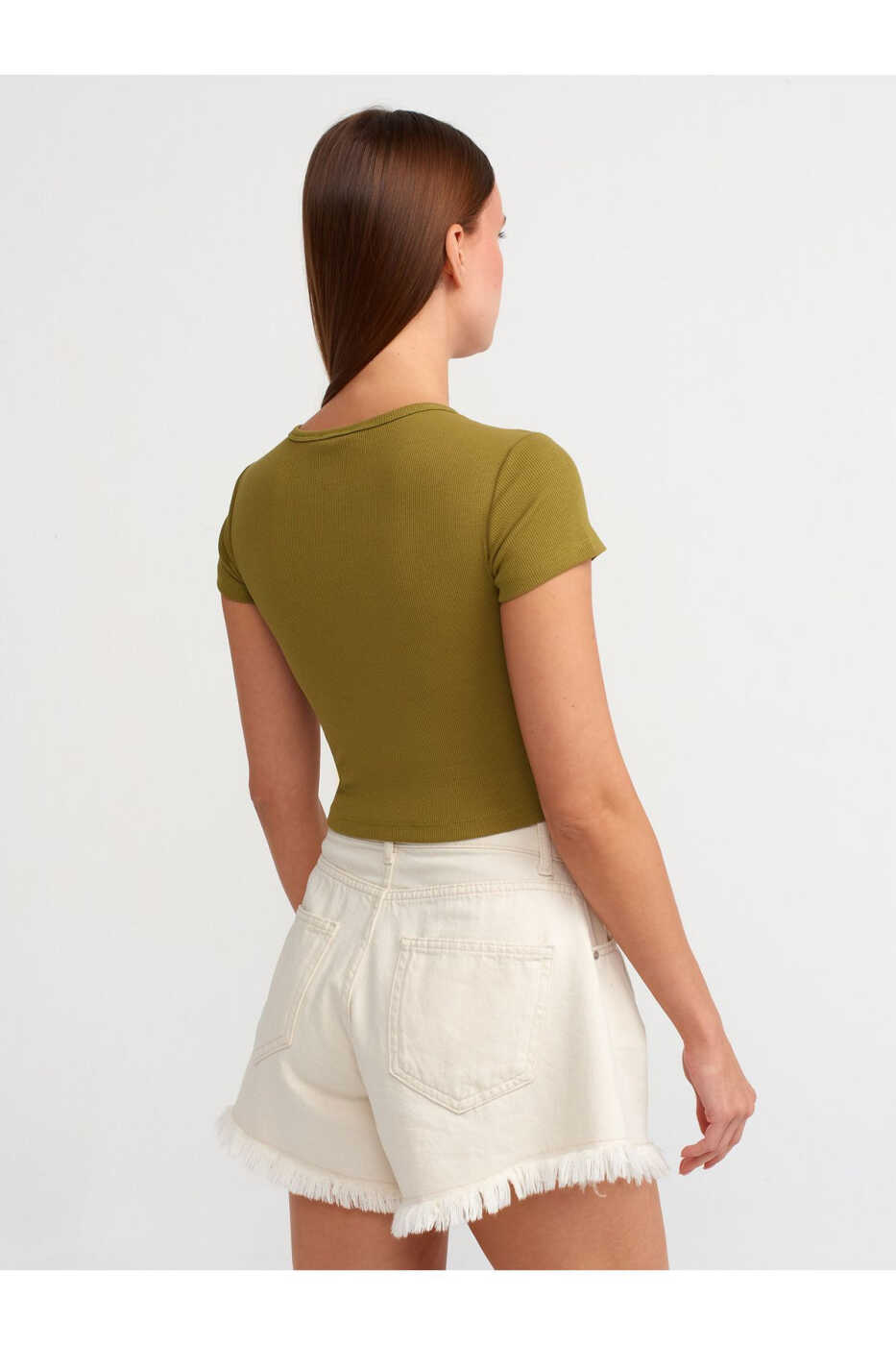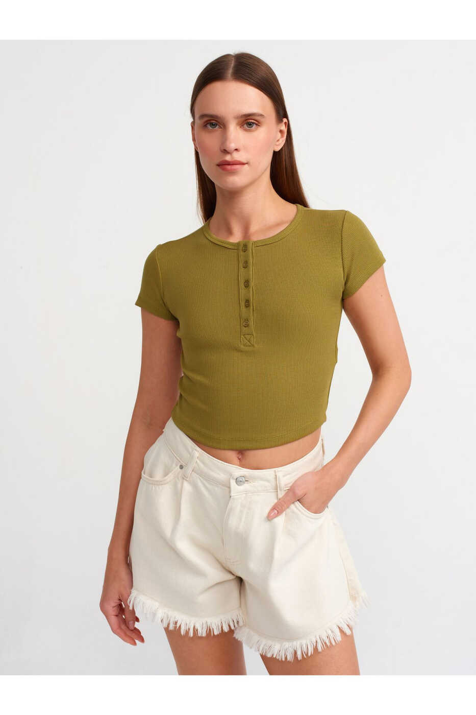 Add a touch of chic to your everyday style! The 30938 Button Detail Crop Top is an ideal choice to complement any outfit with its comfortable fit and stylish button details. Its khaki color will ensure a harmonious look with any combination, making you stand out. Experience all-day comfort with its soft, breathable fabric that fits your body perfectly.
