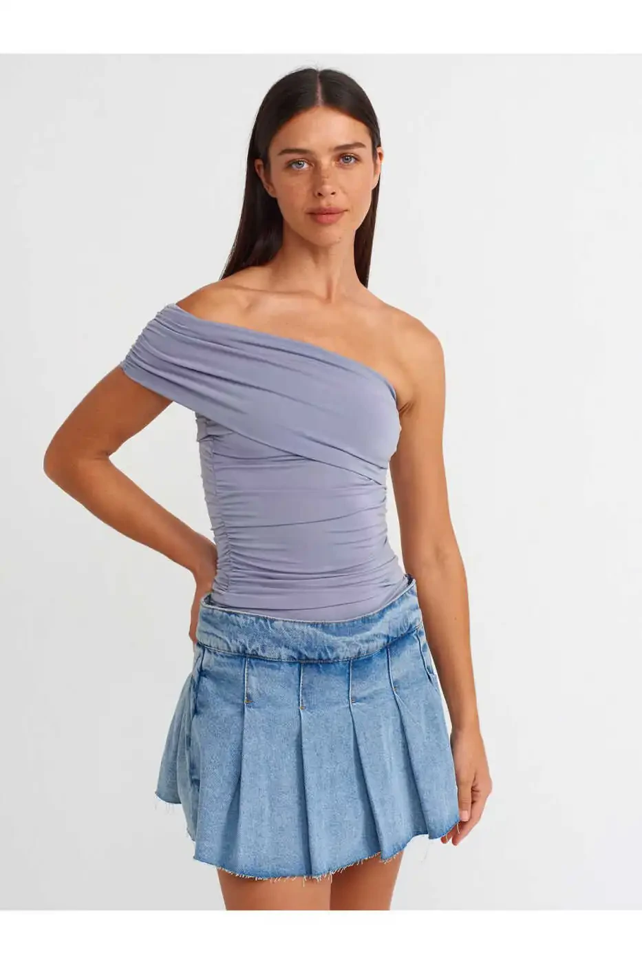 31090 Асимметричная блузка - серая