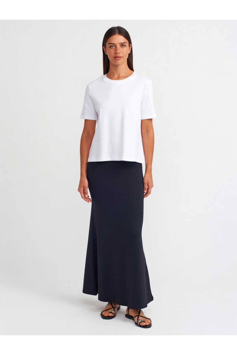 31142 Yassi Yaka Paxta Futbolka - Oq