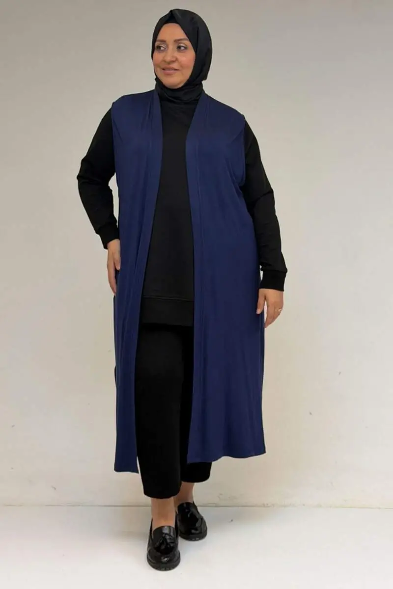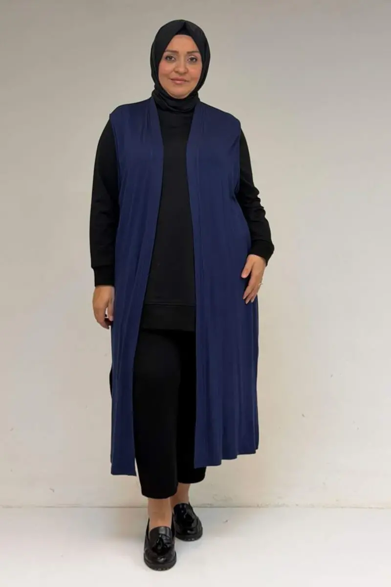 34000 Büyük Beden Penye Giy-Çık Yelek - İndigo