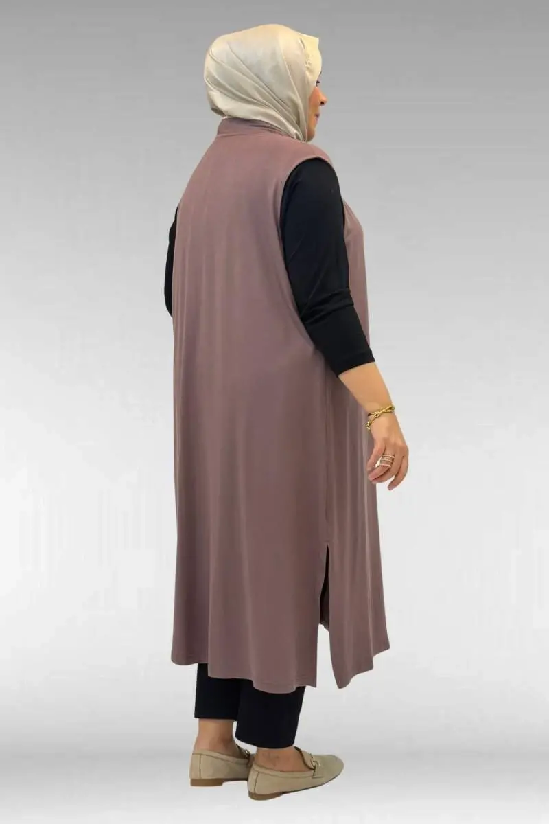 34000 Büyük Beden Penye Giy-Çık Yelek - Vizon