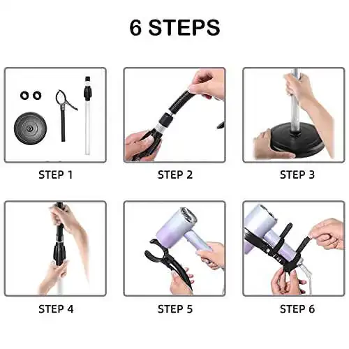 hair dryer stand, lazy hair dryer, hands-free hair dryer, hair dryer holder, countertop hair dryer stand, adjustable height, 360 degree rotating, heavy base
