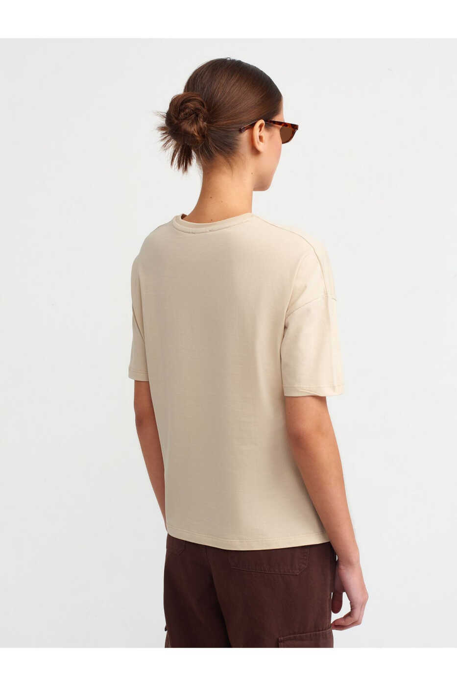 3683 Yassi Yaka Asosiy Futbolka - Ochqir Jigarrang