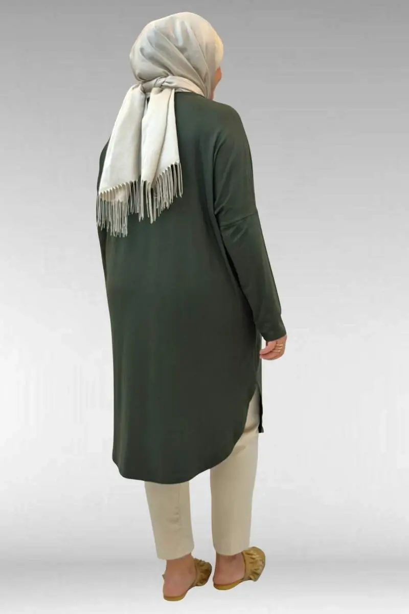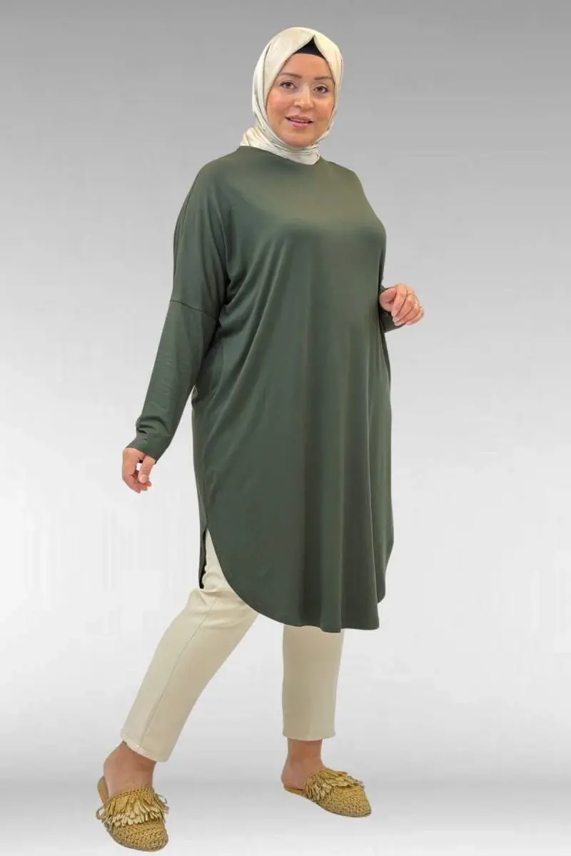 38110 Büyük Beden Düşük Kol Penye Tunik - Haki