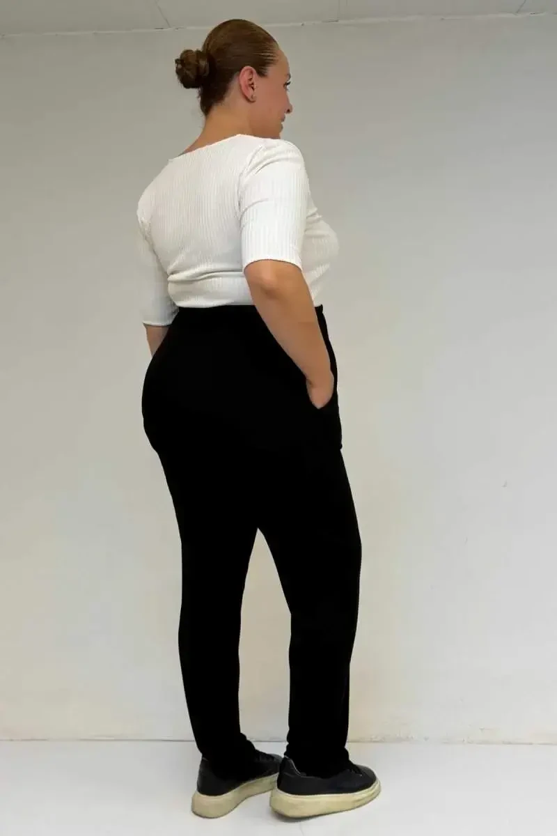 Трикотажные брюки больших размеров 39001 с высокой талией и эластичным поясом - черные, специально разработаны для женщин больших размеров, которые ищут современный и удобный стиль. Сочетая в себе стиль и комфорт, эти брюки станут незаменимой вещью в вашем гардеробе. Завышенная талия мягко подчеркивает фигуру и придает более стройный вид. Эластичная деталь на талии обеспечивает комфорт в течение всего дня, а также помогает брюкам идеально сидеть на вас. Мягкая текстура трикотажной ткани нежно соприкасается с вашей кожей и обеспечивает комфорт в течение всего дня. Эластичная структура не ограничивает свободу движений, поэтому вы можете с комфортом носить их как при выполнении повседневных дел, так и на особых мероприятиях. Черный цвет легко сочетается с любым нарядом, подчеркивая ваш стиль. Создайте повседневный образ со спортивной футболкой или наденьте элегантную блузку на особое мероприятие - эти брюки будут сопровождать вас в любой ситуации. Эти брюки, разработанные с учетом потребностей женщин больших размеров, предлагают стильную и удобную альтернативу. Высококачественные материалы и изготовление обеспечивают длительный срок службы. Эти брюки, которые обязательно должны быть в вашем гардеробе, всегда заставят вас чувствовать себя стильно и уверенно. Находитесь ли вы дома, отдыхаете или встречаетесь с друзьями на улице, эти брюки всегда будут сопровождать вас и дополнять ваш стиль. Являясь одним из самых модных предметов моды больших размеров, эти брюки оправдают ваши ожидания, предлагая как комфорт, так и стиль. Эти брюки, сочетающие в себе вневременность черного цвета и комфорт трикотажной ткани, можно с комфортом носить в любое время года и отражать свой стиль с помощью различных комбинаций. В этих брюках вы будете выглядеть стильно и наслаждаться комфортом в течение всего дня.