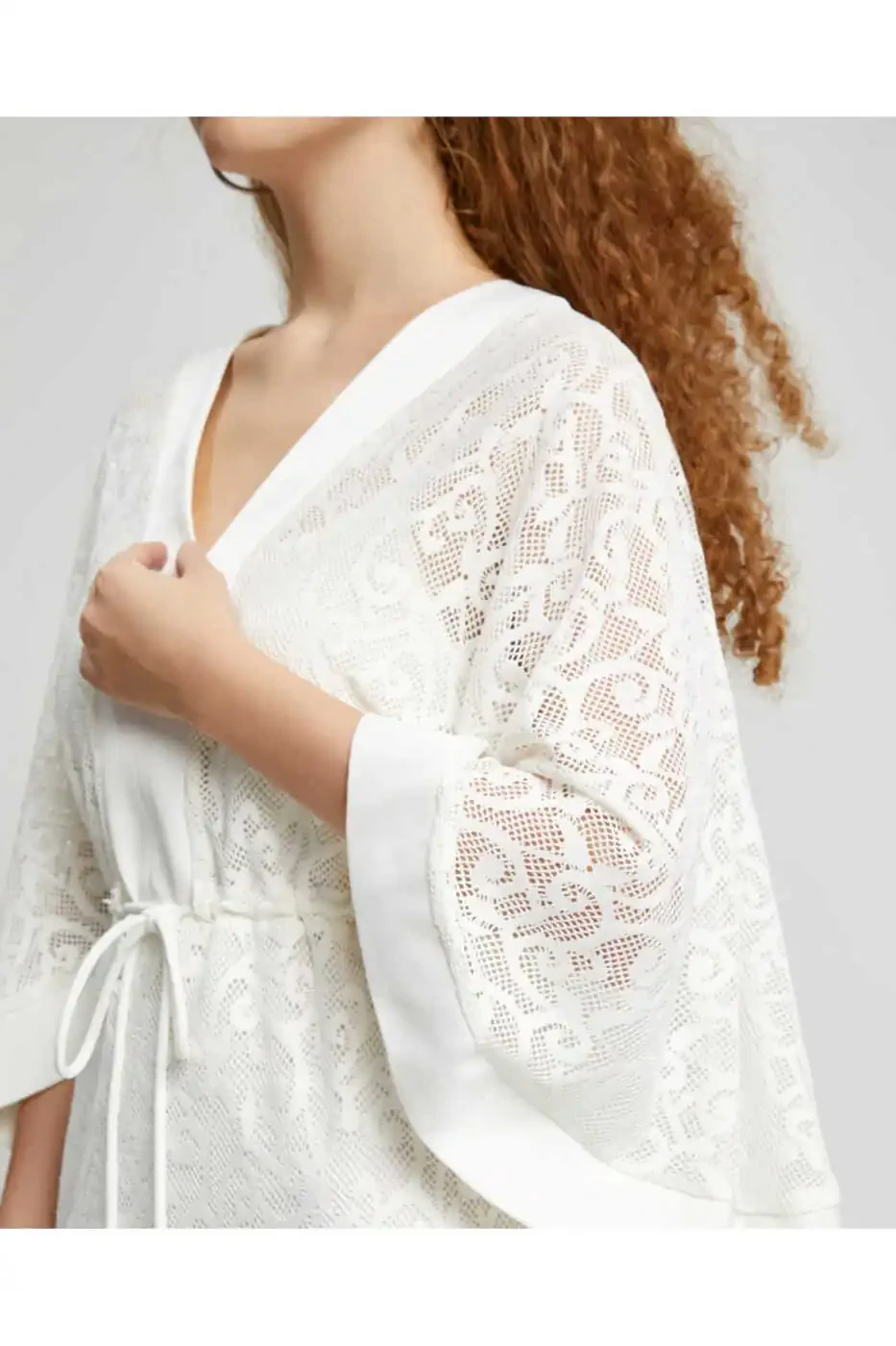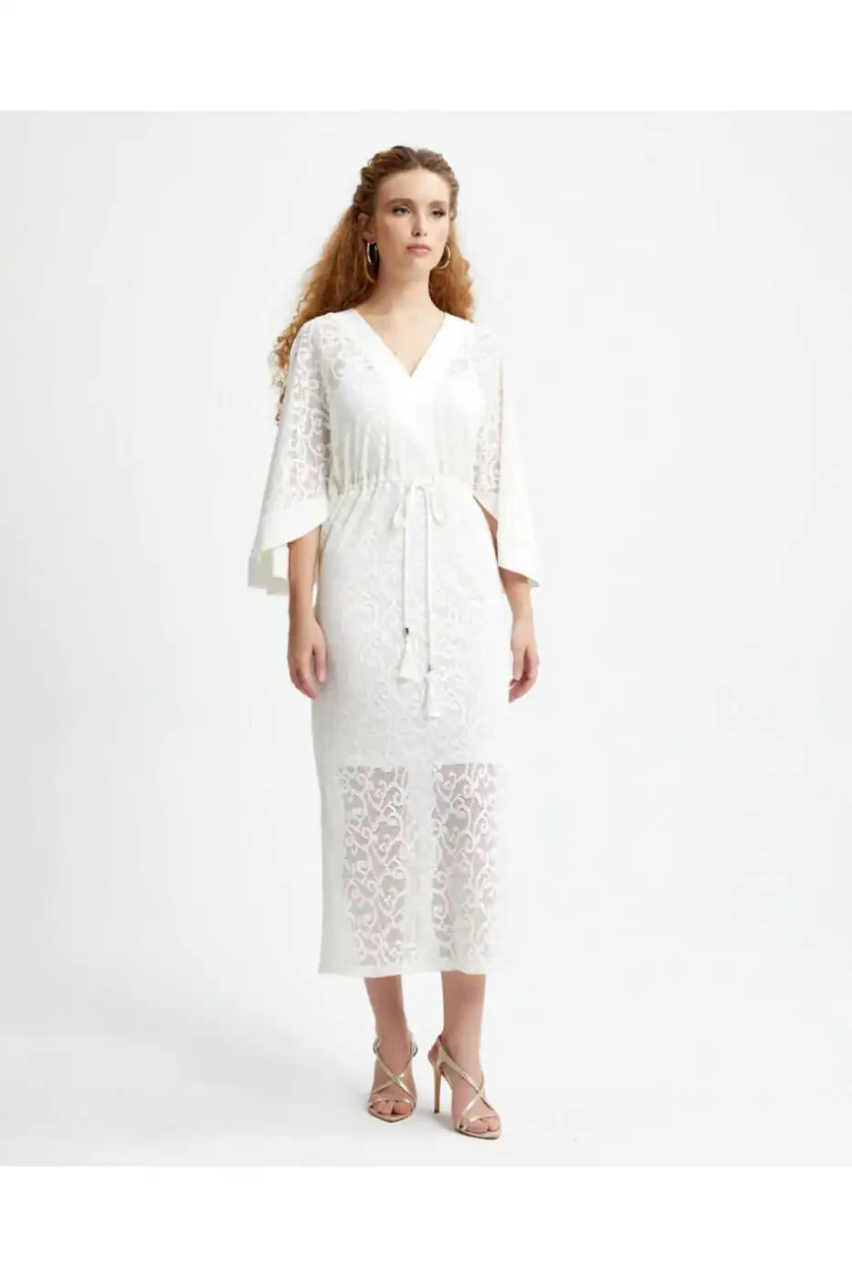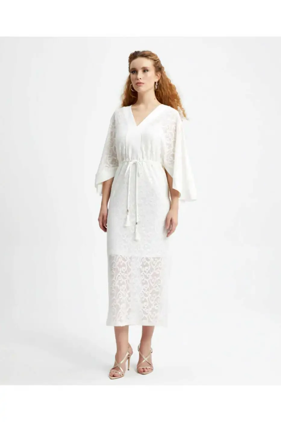 **Naqshli va Moda: Uzun Sut Rangi Ko'ylak, Ichki Astarli, V-Shaklidagi Yoqa va Ispancha Yengli**