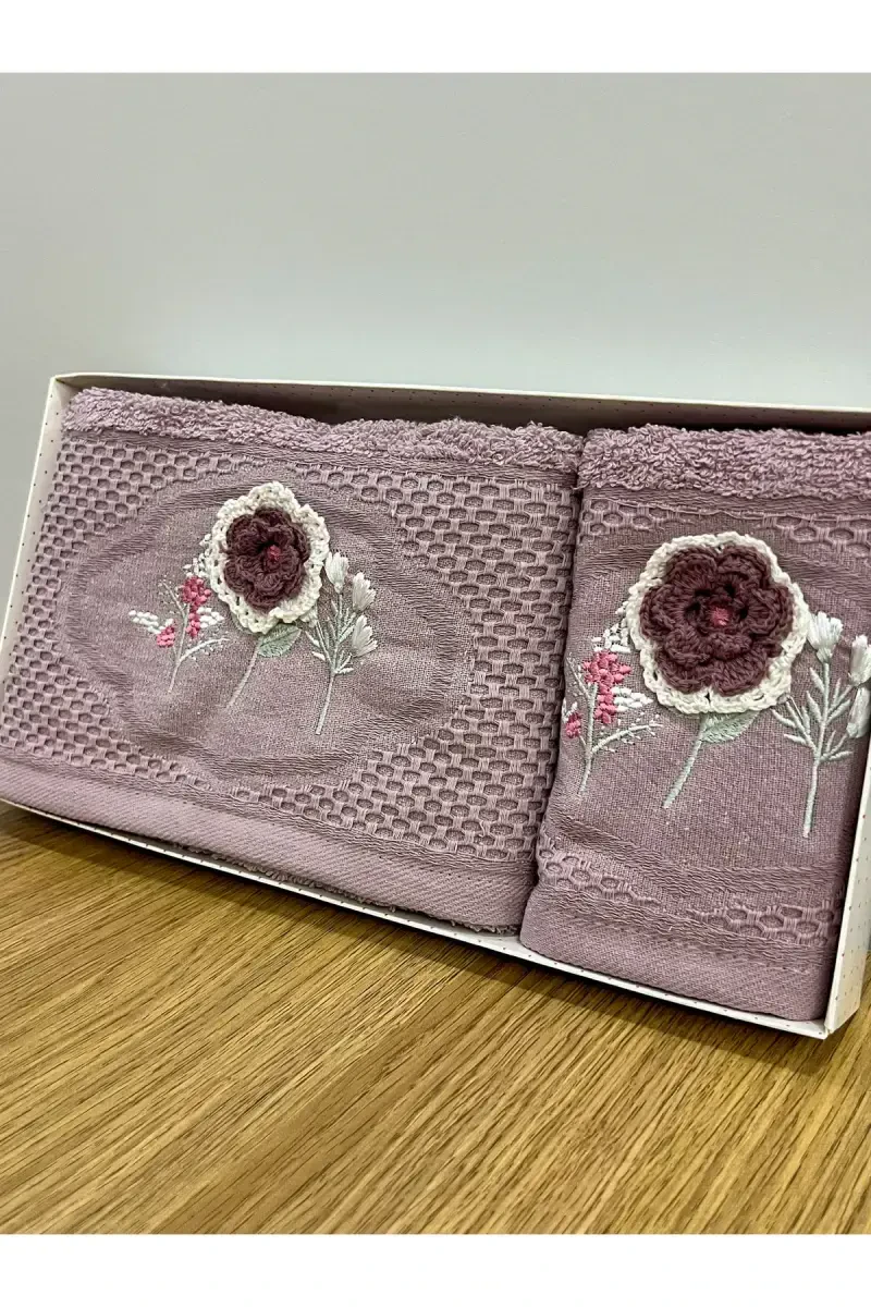 3D Floral Embroidered Boxed Dowry Towel Set is a special product designed to add style and elegance to your bathroom and kitchen. This set is made of high-quality cotton yarn and stands out with its soft texture and fast water absorption feature. The enchanting tone of purple combines with the 3D floral embroidery on the towels to create a visual feast. The 50x90 cm hand towel in the set offers a relaxing experience by gently touching your skin, while the 30x50 cm kitchen towel makes your work in the kitchen easier. This towel set, which is an ideal option for those preparing dowry, turns into a meaningful gift that you can present to your loved ones thanks to its special box. You can change the atmosphere of your bathroom and kitchen with this stylish towel set while hosting your guests or in daily use. The durable structure of the product offers long-lasting use, while the easy-to-wash feature ensures hygienic use. 3D flower details add a different dimension to the towels, offering an aesthetic appearance. This specially designed towel set is not just a towel, but also a stylish accessory that contributes to the decoration of your home. This set, which has been carefully considered in every detail, will meet your expectations with its usability and aesthetic appearance. This towel set, which is also ideal for those looking for an unforgettable gift alternative, is one of the most beautiful ways to make your loved ones happy. You can choose this special towel set to add a luxurious touch to your bathroom and kitchen and offer practical use at the same time. The quality and elegance of the product ensures that it remains as good as new for many years, offering you a pleasant usage experience. Create a difference in your home with this special design towel set!