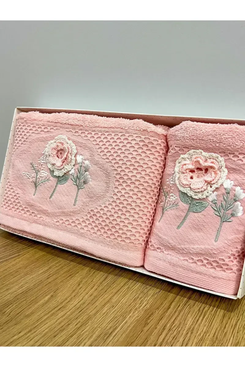 Seplik 3D gulli kashtali sochiqlar to'plami - Pudra | Qutida, Paxta, Yuqori shimuvchanlik | Qo'l, Yuz, Oshxona sochiqlari
