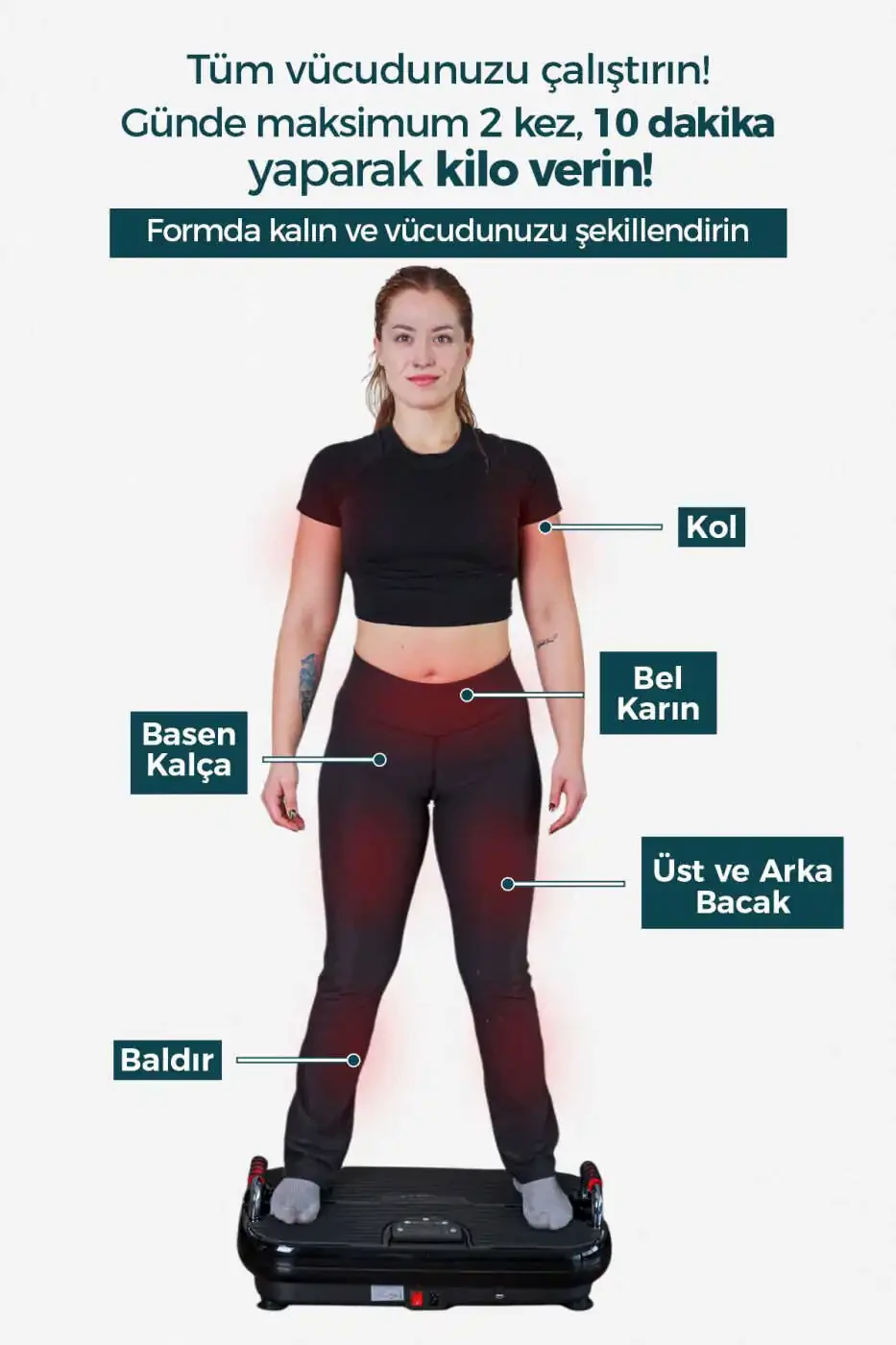 Bu ürün TeknoGerman tarafından gönderilecektir.Kampanya fiyatından satılmak üzere 100 adetten fazla stok sunulmuştur.İncelemiş olduğunuz ürünün satış fiyatını satıcı belirlemektedir.Bir ürün, birden fazla satıcı tarafından satılabilir. Birden fazla satıcı tarafından satışa sunulan ürünlerin satıcıları ürün için belirledikleri fiyata, satıcı puanlarına, teslimat statülerine, ürünlerdeki promosyonlara, kargonun bedava olup olmamasına ve ürünlerin hızlı teslimat ile teslim edilip edilememesine, ürünlerin stok ve kategorileri bilgilerine göre sıralanmaktadır.Bu üründen en fazla10 adet sipariş verilebilir.10 adedin üzerindeki siparişleri Trendyol iptal etme hakkını saklı tutar.Belirlenen bu limit kurumsal siparişlerde geçerli olmayıp, kurumsal siparişler için farklı limitler belirlenebilmektedir.15 gün içinde ücretsiz iade. Detaylı bilgi için[page="return_conditions"]tıklayın .Plus Model Yüksek Titreşimli Zayıflama, Egzersiz ve SporCihazı , dikeyosilasyon ve titreşim ile çalışarak tüm vücudunuzu harekete geçirmeye yarayanbir spor aletidir.Üzerinde yapabileceğiniz 25 farklı hareket ile vücuduntamamını kolayca çalıştırabilir ve günde sadece 20 dakika kullanarak günlükspor ihtiyacınızı karşılayabilirsiniz.Şık tasarımı ve boyutu sayesinde eviçerisinde kolayca yer değiştirebilir, sessiz çalışma sistemiyle birliktekimseyi rahatsız etmeden sporunuzu yapabilirsiniz.Maksimum verim için sizeuygun bir diyet ile birlikte cihazı kullanmanızı tavsiye ederiz.