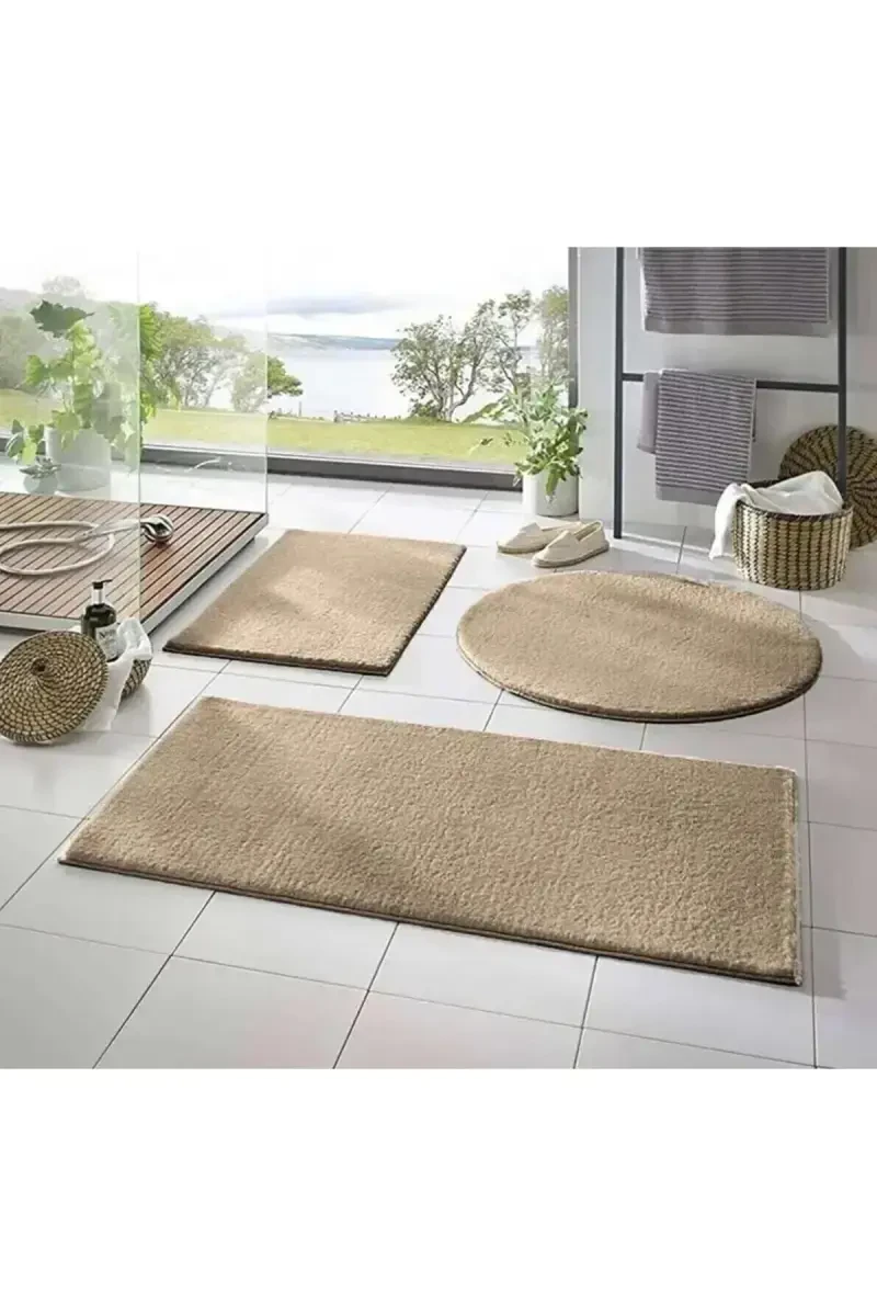 Banyo Paspasi Seti 3'lü Vizon | Peluş Halı Klozet Takımı | Kaymaz Taban
