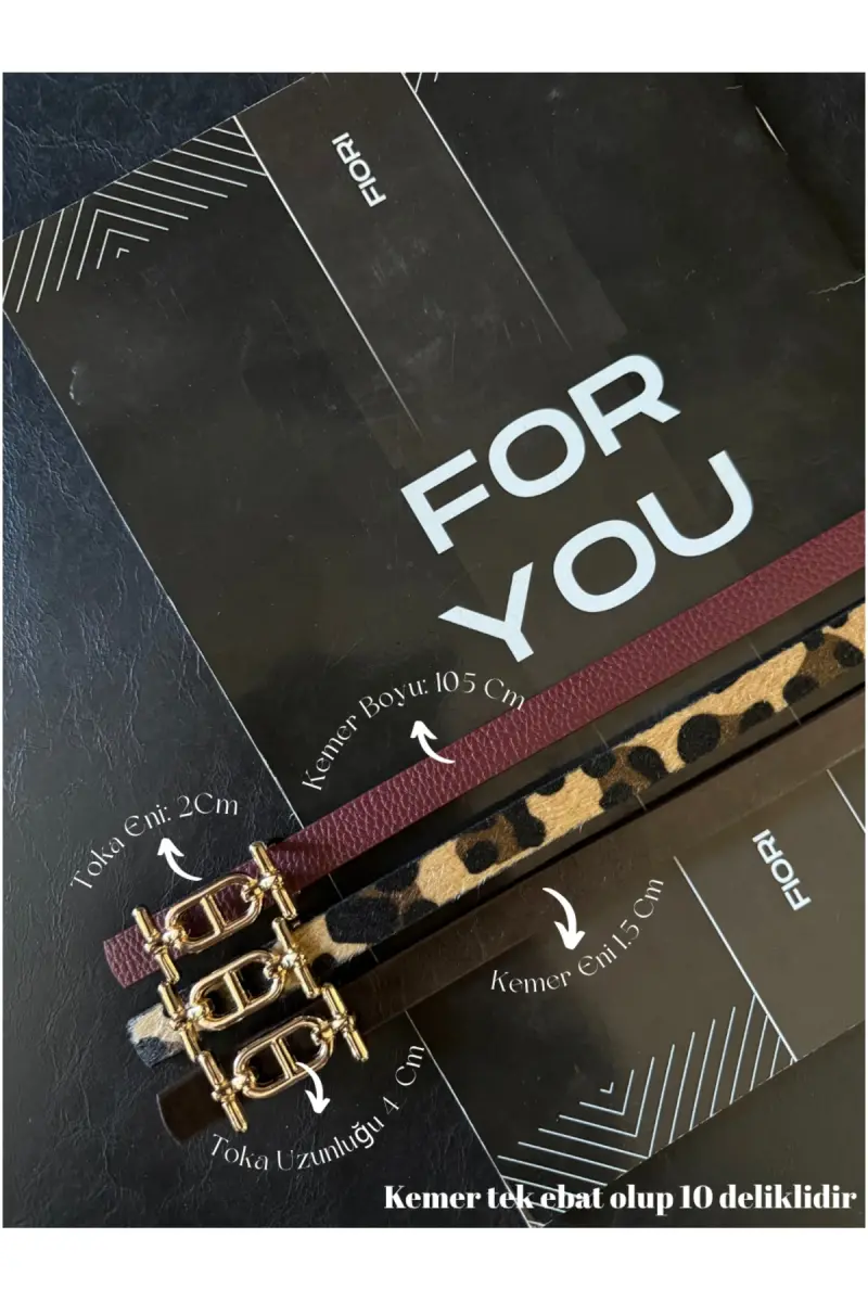 3'lü Gold Tokalı İnce Kemer, Pantolon Kemeri, Gömlek Kemeri, Ceket Kemeri-Kahve
