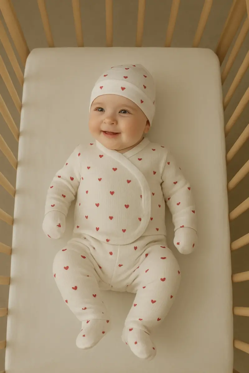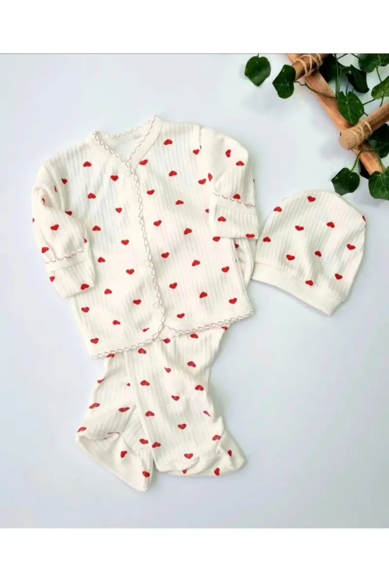 3'lü Kendinden Eldivenli Pamuk Yenidoğan Bebek Takım-Kırmızı3lükalp