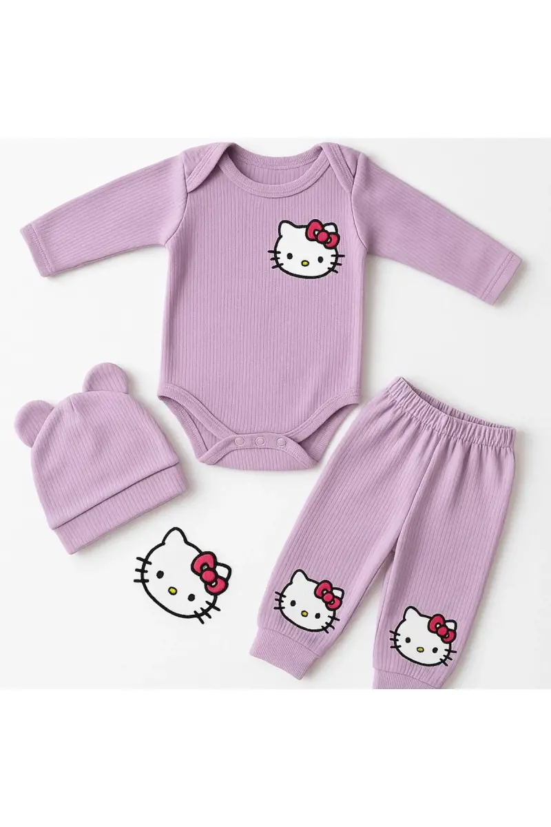 3'lü Nakışlı Pamuk Kız Bebek Body Takım-Morlila3lükız