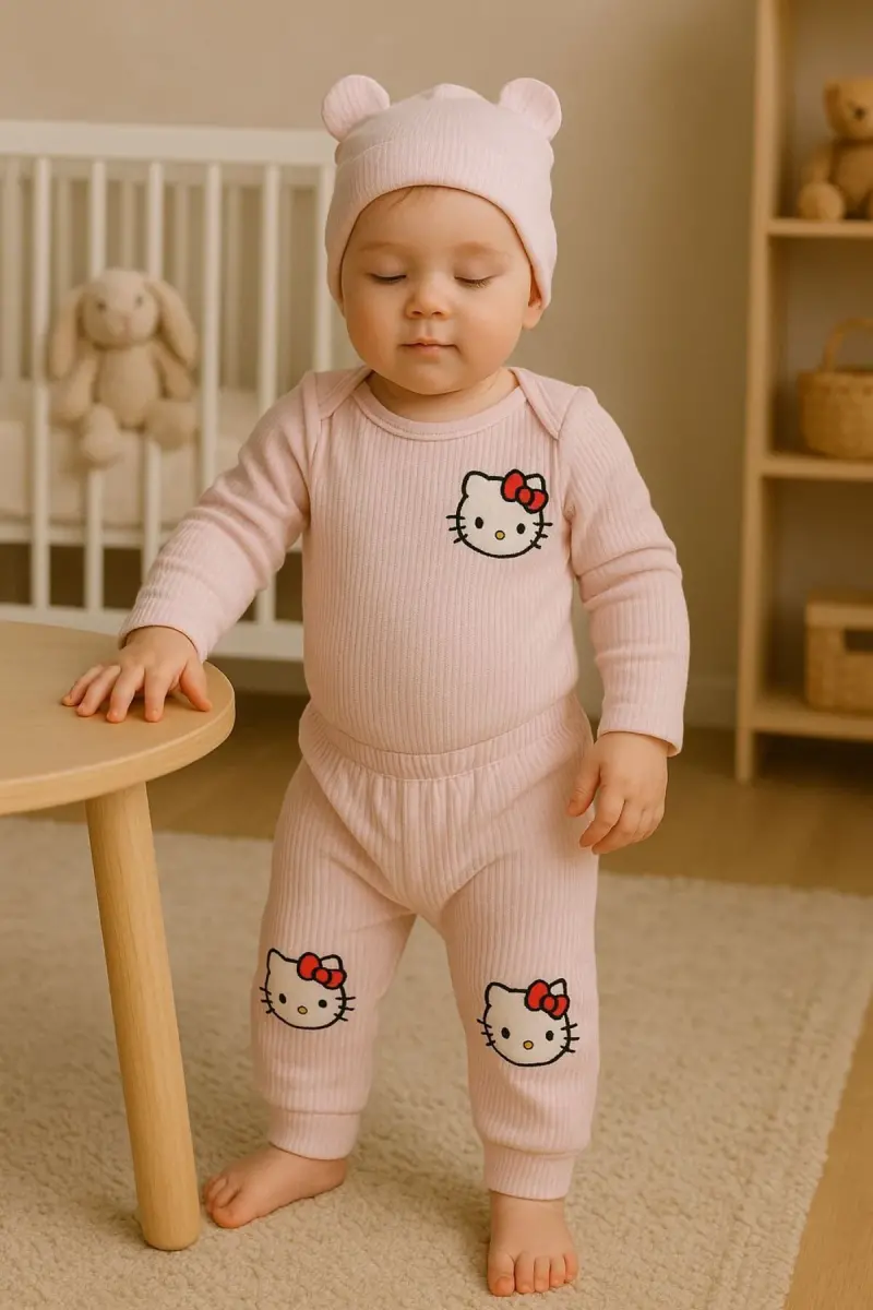 3'lü Nakışlı Pamuk Kız Bebek Body Takım-Pembe3lükız