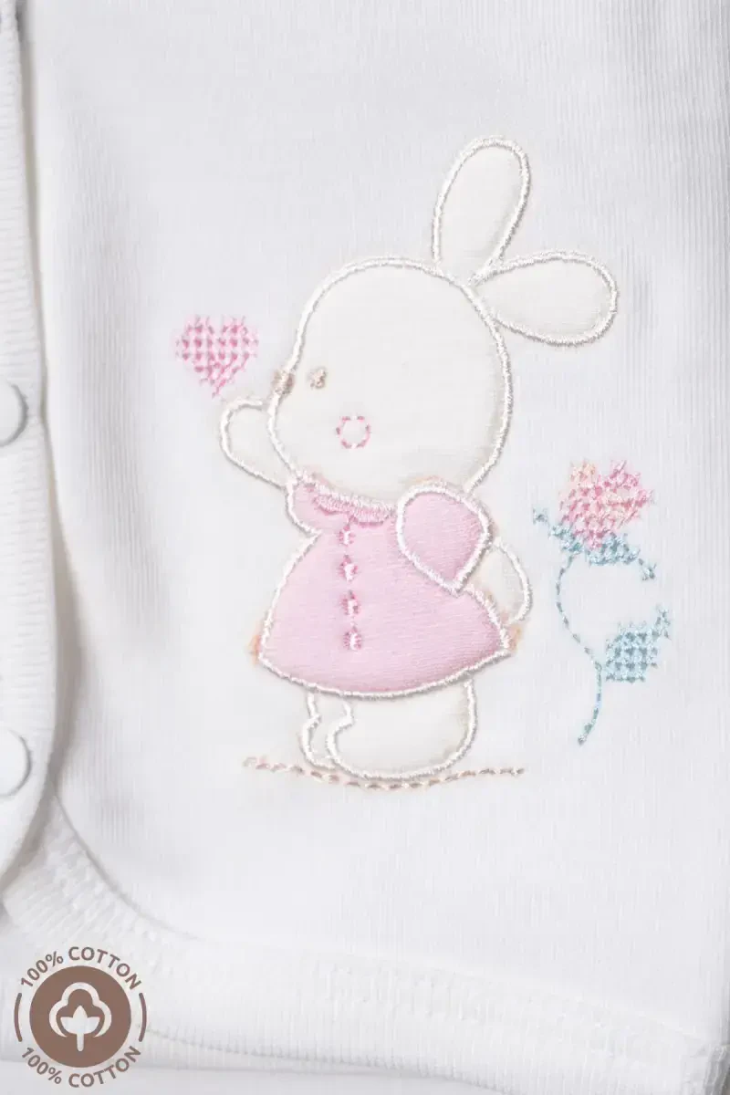 Combine the style and comfort of your little one with this cute rabbit embroidered, unisex baby vest set! Made from 100% organic cotton, this soft vest set gently touches your baby's delicate skin and offers a breathable structure. The 3-piece set offers different size options for babies between 3-6-9 months, so you can keep up with your baby's growth.