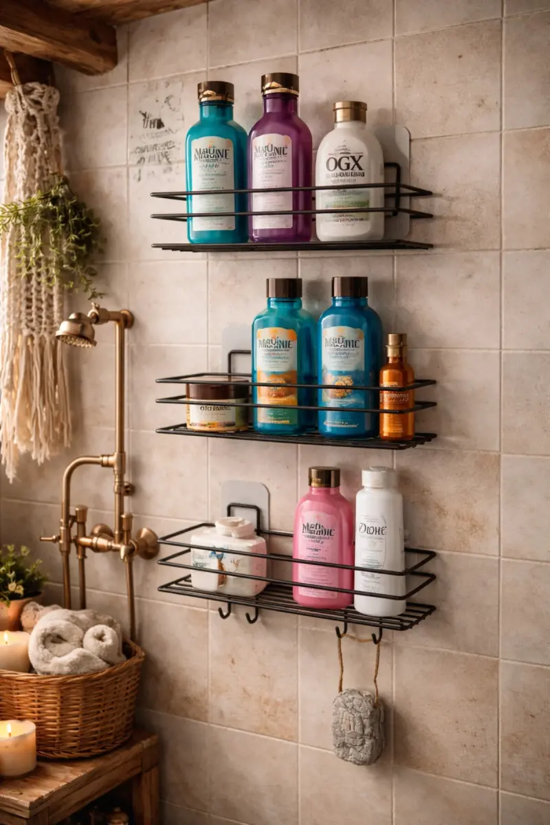 • Помогает поддерживать порядок шампуней, мыла, гелей для душа, мочалок и других банных принадлежностей.
