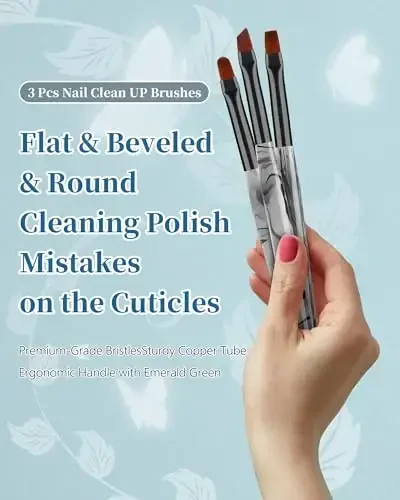Meet the high-quality 3-piece Nail Polish Clean Up Brush set, suitable for professional and home use! This set is designed to perfect your nail polish applications and achieve a flawless look. Whether you are a professional manicurist or a DIY enthusiast passionate about nail art, this set offers you the precision and control you need. Thanks to the round, flat, and angled brushes included in the set, you can achieve perfect results in all kinds of nail designs and cleanups. Made from special materials resistant to acetone-based solutions such as OPI nail polish remover, these brushes offer long-lasting use and easy cleaning. The stylish black handles inspired by Chinese calligraphy provide ease of use as well as an aesthetic appearance. This set is not just a tool, but also an indispensable part of your nail care routine. It gently cleans excess nail polish around the nails, helping you create a flawless look without disturbing your nail design. Ideal for beginners, this set is also an indispensable tool for professional manicurists. The round brush is ideal for cleaning excess nail polish in wide areas, while the angled brush provides precise cleaning in narrower and hard-to-reach areas. The flat brush is perfect for general cleaning and touch-ups. High-quality synthetic bristles provide gentle and effective cleaning, while the sturdy acrylic handle ensures durability for long-term use. Thanks to acetone resistance, the life of your brushes is extended and they always perform at their best. The cleaning process is also extremely easy; You can gently clean your brushes with an acetone-free cleaner and prepare them for the next use. In this way, you can ensure that your brushes remain like the first day. An excellent gift option for yourself or your loved ones, this Nail Polish Clean Up Brush set is ideal for birthdays, special occasions or just to treat yourself. It is a choice that will make everyone happy with its stylish packaging and useful content. Don't miss this set to take your nail art to the next level and have nails that always look flawless!