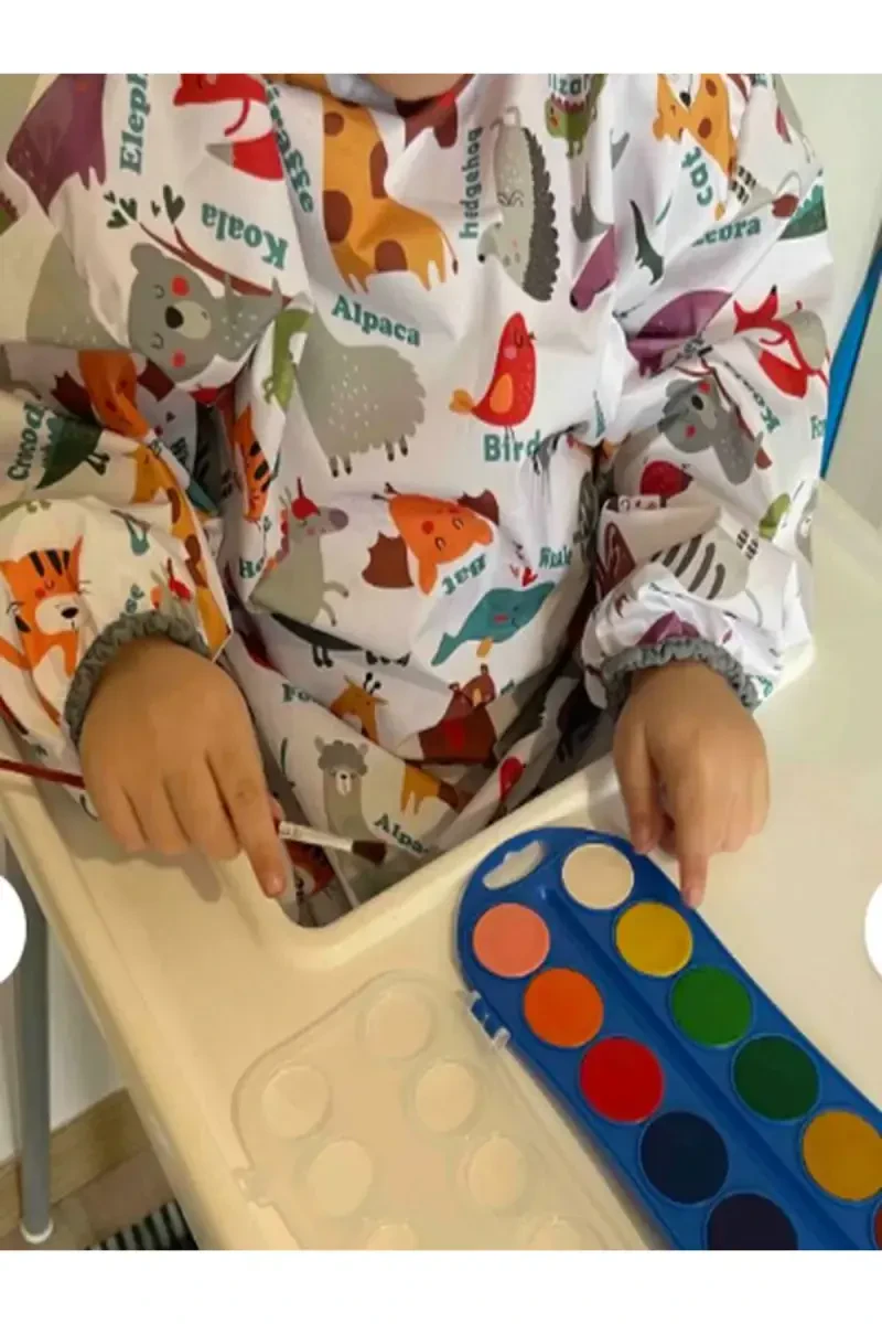 Представляем вам водонепроницаемый детский фартук с длинными рукавами Zooo для занятий творчеством для детей 4-7 лет, который позволяет вашим детям свободно проявлять свои творческие способности, предлагая веселый и защитный опыт! Этот фартук специальной конструкции защищает одежду ваших маленьких художников и изобретателей от возможных пятен от краски, пластилина, глины и других видов художественной деятельности, позволяя им свободно двигаться. Этот фартук, подходящий для использования в любых видах деятельности, от детского сада до дошкольного учреждения, от игровых часов дома до мастер-классов, станет величайшим помощником родителей. Благодаря длинным рукавам он защищает большую часть одежды, включая руки. Благодаря водонепроницаемой и грязеотталкивающей ткани его чрезвычайно легко чистить; он остается как новый, просто протерев его или слегка постирав. Он производится в Турции в соответствии с европейскими стандартами с использованием красок и материалов, сертифицированных Oeko-TEX Standard 100, которые не содержат вредных для здоровья ваших детей веществ. Таким образом, вы можете быть уверены, что каждый материал, контактирующий с кожей вашего ребенка, безопасен. Система застежки-липучки на шее позволяет легко надевать и снимать фартук, а мягкие резинки на запястьях повышают комфорт. Этот оранжевый фартук, привлекающий внимание детей, поддерживает их творчество и успокаивает родителей, защищая их одежду. Помните, с этим фартуком воображение вашего ребенка не будет знать границ!