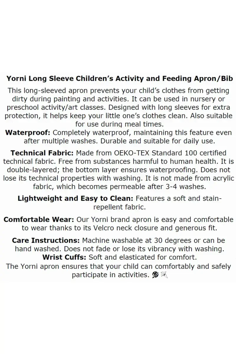 Let your little ones unleash their creativity with the Zoo Waterproof, Machine Washable, Long Sleeve Children's Activity and Painting Apron, ideal for your 4-7 year old child! This apron, which will protect their clothes during many activities from painting to playing with play dough to eating, will also be a great helper for parents. With its durable and comfortable design, this apron offers long-term use and is a perfect solution that your child can easily use both at home and at school.
