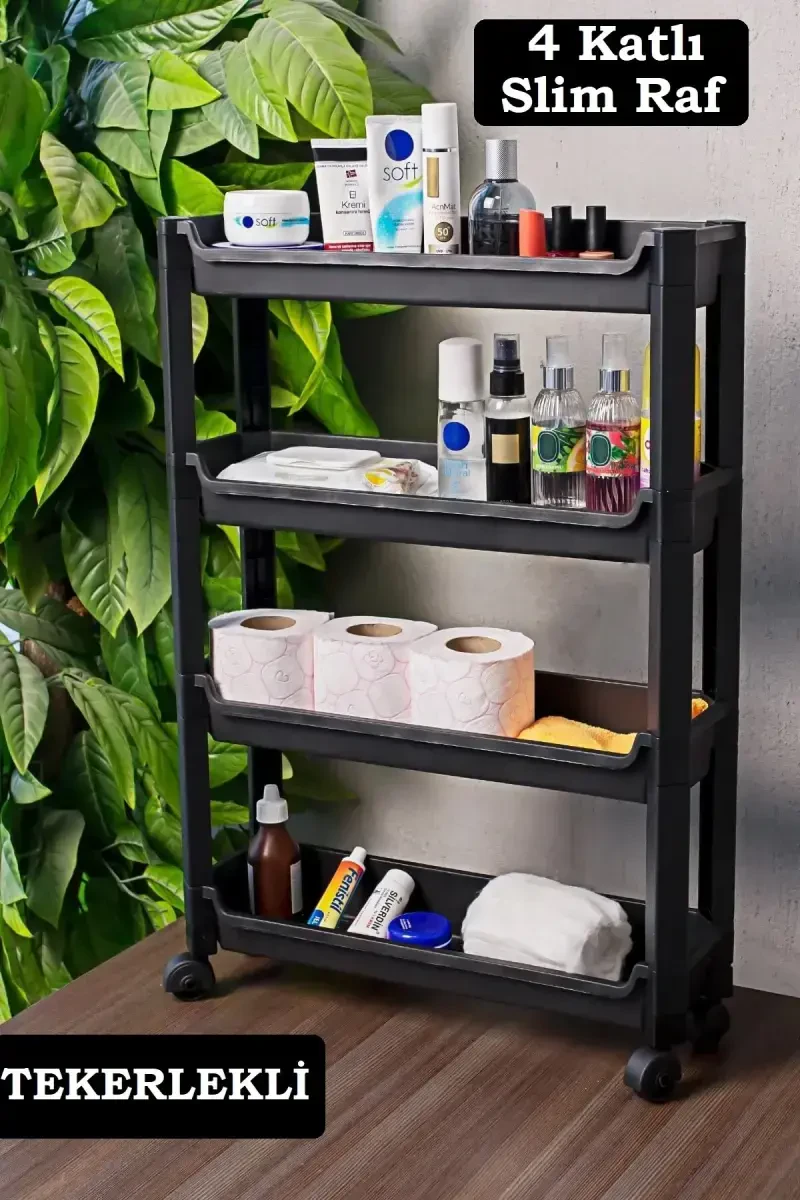 The 4-Tier Slim Wheeled Bathroom Shelf, the savior of narrow spaces, is a versatile organizer that you can use in every corner of the house, such as the bathroom, kitchen, and living room. With its stylish and modern design, this shelf unit, which adapts to all kinds of decoration, helps you to store your belongings in an organized way and at the same time saves space. Made of durable material, the shelf offers long-lasting use. Thanks to its 360-degree rotating wheels, you can easily move it and position it wherever you want. Each shelf, which is wide and spacious, allows you to organize many different products, from bathroom supplies to kitchen utensils, from books to decorative objects. This shelf unit, which is very easy to assemble, can be installed quickly without any tools. Its black color and minimalist design add elegance to any environment. The 4-Tier Slim Wheeled Bathroom Shelf, an ideal option for those looking for storage solutions in narrow spaces, will provide order and spaciousness in your home.