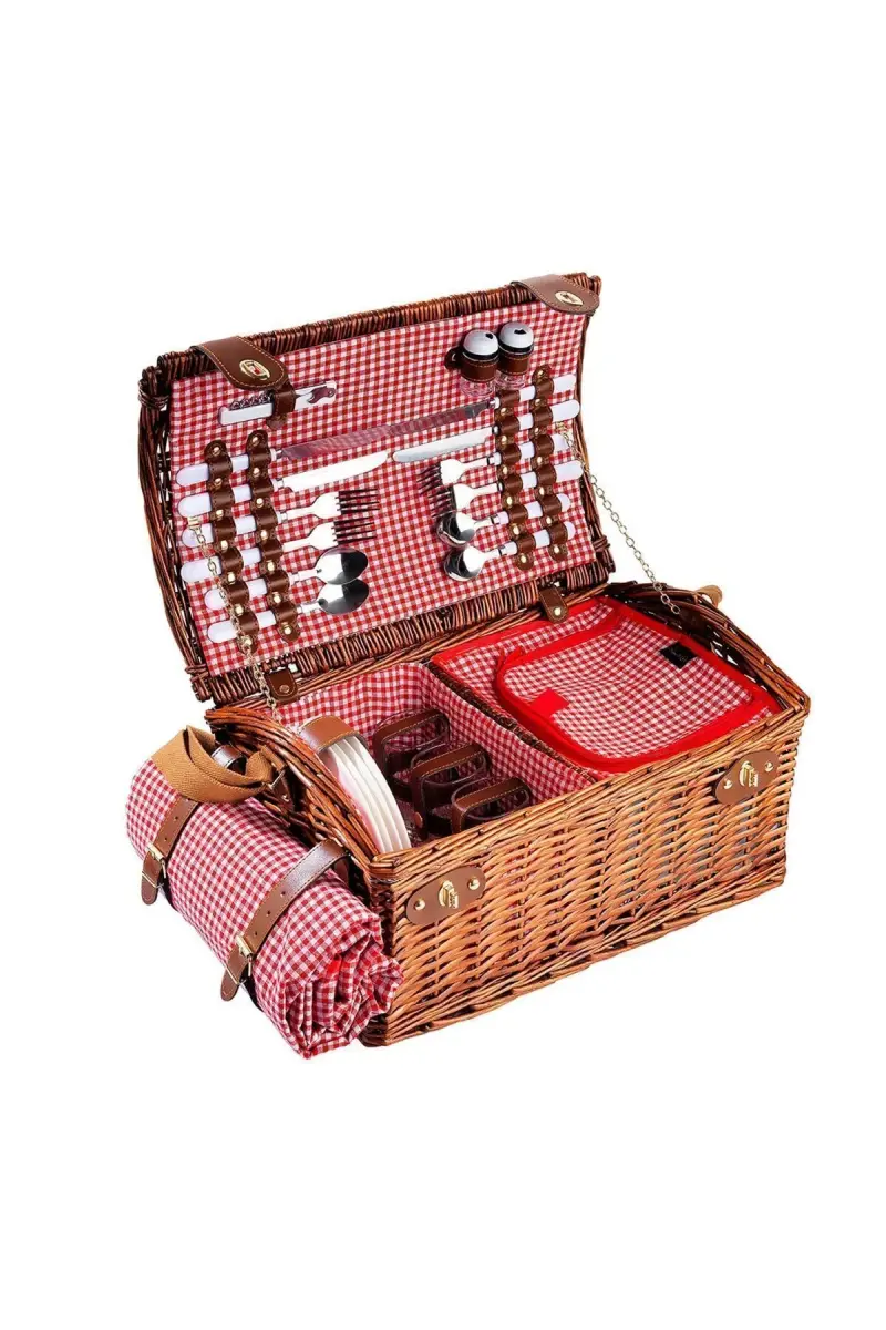 Enjoy the taste of nature with the 4-Person Plaid Picnic Basket (nz-06), create beautiful memories with your loved ones!