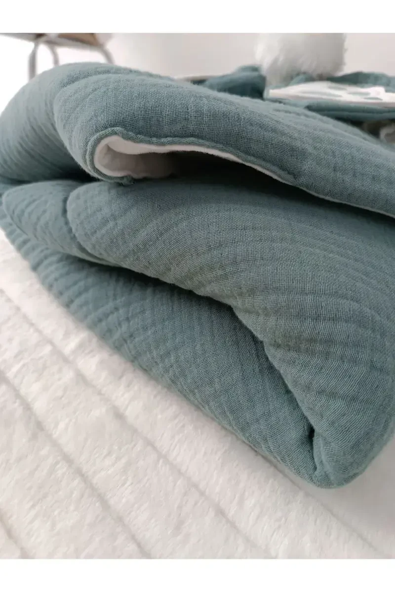 Ищете лучшее для нежной кожи вашего ребенка? Представляем вам 4-слойное муслиновое зеленое детское одеяло из 100% хлопка, натуральное и органическое! Это специально разработанное одеяло - универсальный продукт, который вы можете безопасно использовать с рождения вашего ребенка. Это идеальный выбор для выписки из больницы, а также оно ставит во главу угла комфорт и здоровье вашего ребенка в повседневном использовании. Благодаря мягкой текстуре, дышащей структуре и высокой впитываемости оно нежно окутывает кожу вашего ребенка, не раздражая ее. Размер 75x75 см идеально подходит для использования в качестве пеленки в первые месяцы жизни вашего ребенка. Вы также можете использовать его как чехол для коляски, чехол для кормления, игровой коврик или коврик для смены подгузников. 4-слойная муслиновая структура придает одеялу дополнительную прочность и тепло, а благодаря легкости его легко носить с собой. Сертификат OEKO-TEX гарантирует, что продукт не содержит вредных химических веществ и произведен в соответствии с самыми высокими стандартами безопасности. Зеленый цвет придает комнате вашего ребенка спокойный и естественный вид и подходит как для девочек, так и для мальчиков. Это специальное одеяло, разработанное для здоровья и комфорта вашего ребенка, также является экологически чистым вариантом. Благодаря тому, что оно изготовлено из натурального хлопка и легко в уходе, вы можете безопасно использовать его долгие годы. Если вы ищете гипоаллергенный и натуральный продукт, который не повредит нежной коже вашего ребенка, то 4-слойное муслиновое зеленое детское одеяло - именно то, что вам нужно!