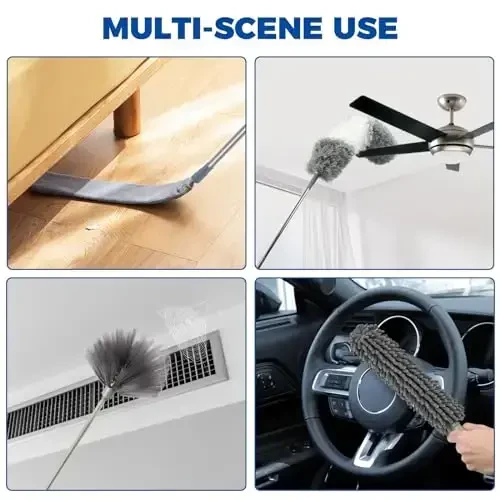 Познакомьтесь с набором для уборки из 4 предметов, который облегчит вашу уборку дома и позволит вам добраться до каждого уголка! Этот набор поставляется с универсальной щеткой для удаления пыли из микрофибры 2-в-1 и выдвижным очистителем промежутков. Этот набор, изготовленный из высококачественной микрофибры, включает в себя все необходимое для уборки всего дома, от пола до потолка. Благодаря двум различным насадкам для удаления пыли (гибкой насадке для удаления пыли из микрофибры и насадке для удаления пыли из промежутков) и сменным тканевым тряпкам вы можете эффективно удалять пыль, грязь и аллергены с различных поверхностей. Очиститель промежутков, специально разработанный для труднодоступных мест, помогает легко очистить грязь в узких и труднодоступных местах, таких как под кроватями, между диванами, в кондиционерах, холодильниках. Щетка для удаления пыли из микрофибры идеально подходит для удаления пыли с электроники, мебели, украшений, жалюзи, потолочных вентиляторов, лампочек и даже салона вашего автомобиля. Благодаря ручке из нержавеющей стали, которая выдвигается от 30 до 100 дюймов, вы можете легко дотянуться до высоких мест, не поднимаясь по лестнице и не наклоняясь. Эта выдвижная функция также обеспечивает удобство хранения и не занимает лишнего места. Насадки для удаления пыли из микрофибры и насадка для очистки промежутков легко снимаются и чистятся. Вы можете стирать и сушить насадки из микрофибры, проветривая их. Тряпки из микрофибры на очистителе промежутков можно стирать вручную или в машине. Кроме того, две полоски ткани, входящие в комплект поставки кисти для промежутков, можно использовать влажными или сухими для протирки мебели. Благодаря спиральному дизайну интерфейса вы можете легко снимать и устанавливать насадки для удаления пыли и очистки промежутков. Эта функция позволяет очень легко переключаться между различными инструментами или экономить место для хранения. При желании вы также можете повесить набор для хранения. Этот универсальный набор для уборки поможет вам сделать уборку дома проще, безопаснее и эффективнее.