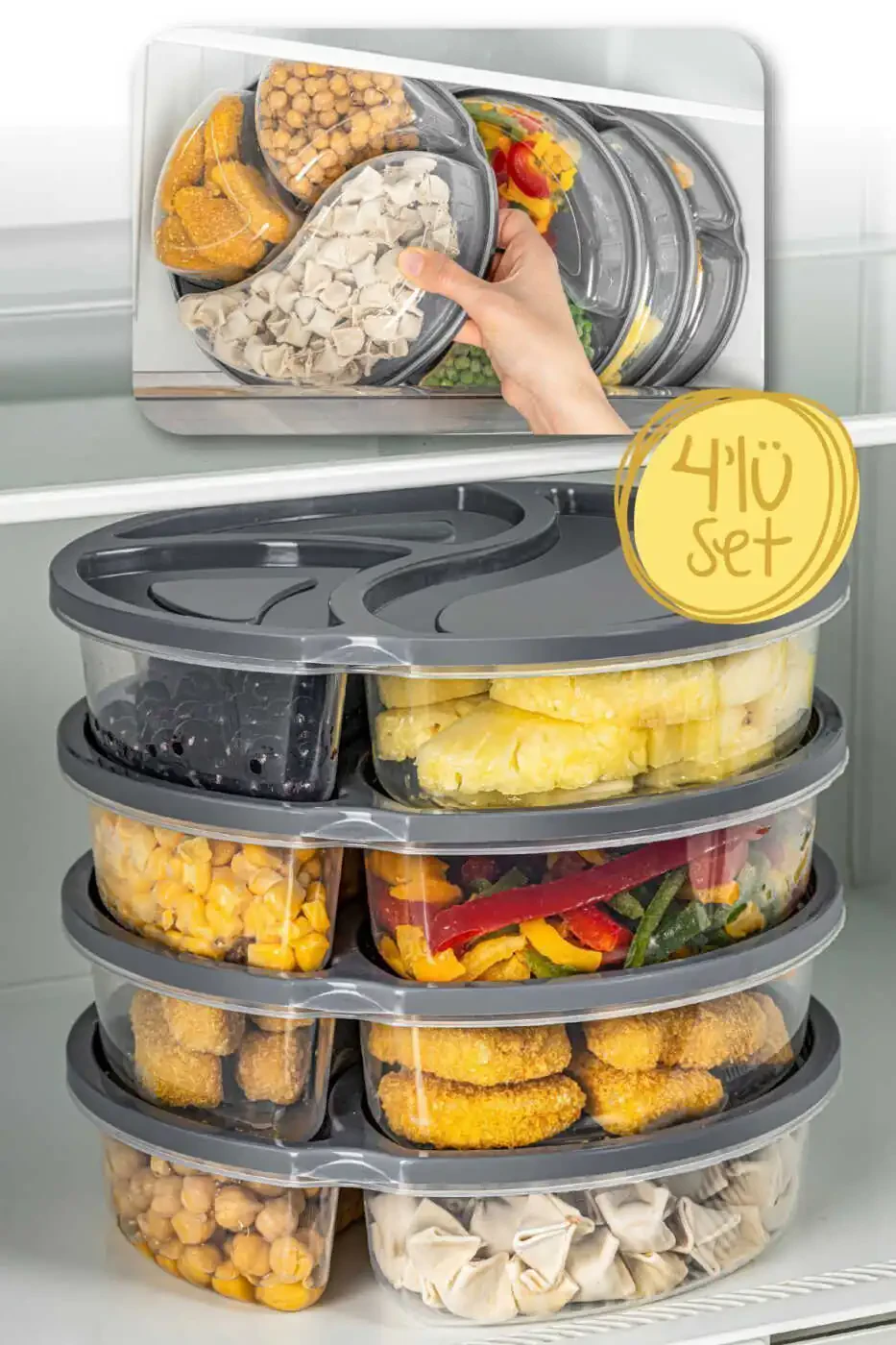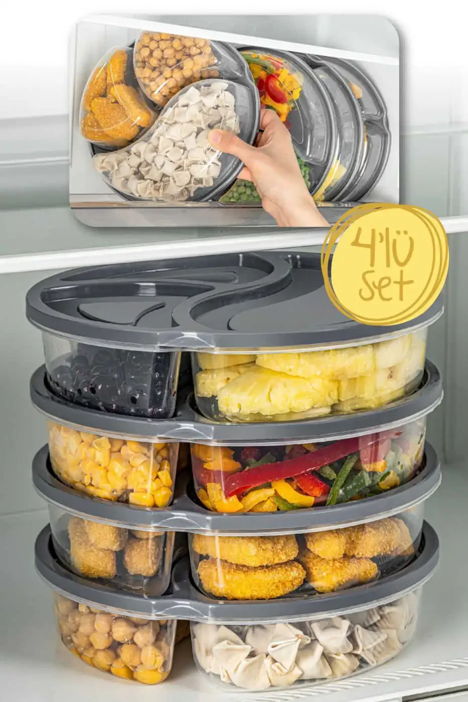 Сделайте организацию своей кухни проще с помощью этого практичного и стильного набора. С помощью 4-х Комплекта Круглых Контейнеров для Хранения с 3 Отсеками вы можете безопасно хранить свою еду и потреблять ее здоровым и вкусным способом.