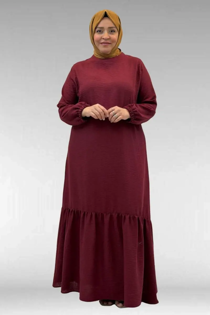 Are you ready to add a sophisticated touch to your wardrobe? The 42027 Plus Size Linen-Look Dress with Gathered Skirt is a candidate to be this season's favorite with its special design that offers elegance and comfort together. Drawing attention with its deep and noble burgundy color, this piece will both complete your daily outfits and make you feel much more confident at special occasions. Combining the natural and elegant vibe of linen texture with modern cuts, this dress has been carefully designed for women seeking style, especially in plus-size clothing. The elegant gathered details on the skirt add mobility to the dress while helping you create a silhouette that harmonizes with your body lines. Thanks to its linen-look texture that keeps you feeling refreshed all day long, this model with its breathable structure will be your greatest savior during hot summer days and spring months. You can reflect your style by pairing it with stylish high heels or comfortable sandals. Suitable for long-term use thanks to its quality fabric structure, this dress is a candidate to become a staple in your wardrobe with its shape-retaining form. If you want to combine chicness with understated elegance, you must try this burgundy dress. Gaining the appreciation of women of all ages with both its modern stance and comfortable cut, the 42027 Plus Size Dress brings you one step closer to a stylish look. Remember, a well-chosen dress is not just clothing; it is also a way to express yourself. This special design, with its timeless color and eye-catching gathered details, will ensure that all eyes are on you in any setting. It is time to refresh your style and pamper yourself!