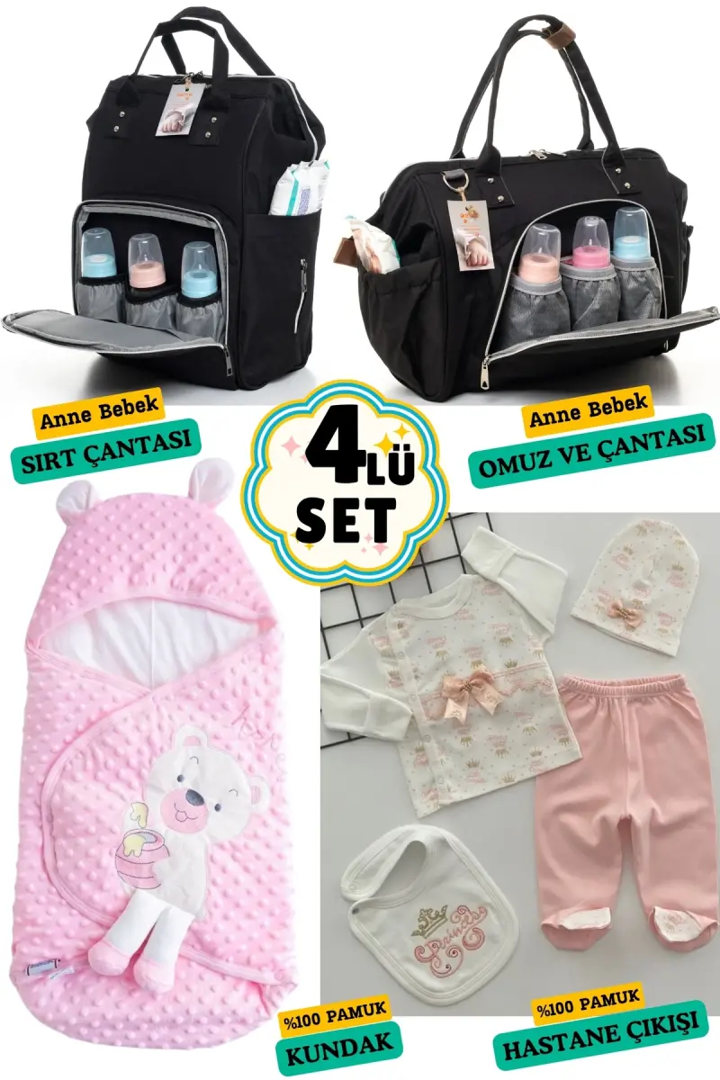 4'li Katta Tug'ilish Seti: Kasalxonadan Chiqish, Chaqaloqni Parvarishlash Sumkalari va O'rash - Bej | To'liq Boshlanish!