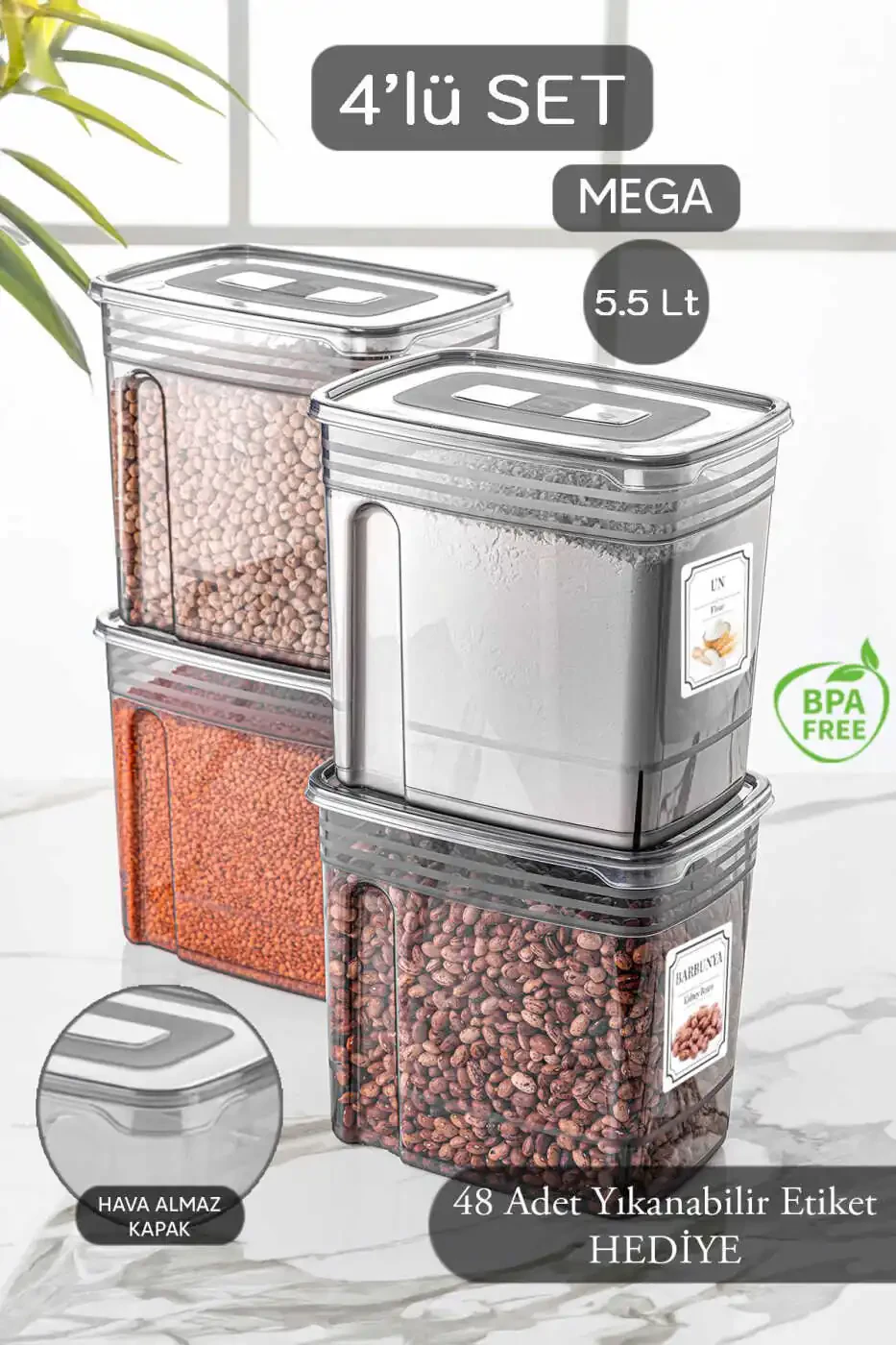 Bu ürün MeleniHome tarafından gönderilecektir.Kampanya fiyatından satılmak üzere 100 adetten fazla stok sunulmuştur.İncelemiş olduğunuz ürünün satış fiyatını satıcı belirlemektedir.Bir ürün, birden fazla satıcı tarafından satılabilir. Birden fazla satıcı tarafından satışa sunulan ürünlerin satıcıları ürün için belirledikleri fiyata, satıcı puanlarına, teslimat statülerine, ürünlerdeki promosyonlara, kargonun bedava olup olmamasına ve ürünlerin hızlı teslimat ile teslim edilip edilememesine, ürünlerin stok ve kategorileri bilgilerine göre sıralanmaktadır.Bu üründen en fazla10 adet sipariş verilebilir.10 adedin üzerindeki siparişleri Trendyol iptal etme hakkını saklı tutar.Belirlenen bu limit kurumsal siparişlerde geçerli olmayıp, kurumsal siparişler için farklı limitler belirlenebilmektedir.15 gün içinde ücretsiz iade. Detaylı bilgi için[page="return_conditions"]tıklayın .4'lü 5,5 Litre Jumbo Boy Lena Un Kabı - Kapaklı Erzak Bakliyat Saklama Kabı - Malzeme Saklama Kutusu Paket içeriği: 4 Adet Erzak Saklama Kabı Ürün Hacim ve Ölçüleri: 5,5 Lt – 16,5 x 20,3 x 20,5 cm. 185,977 oz – 6,49 x 7,99 x 8,07 in Meleni Home un bakliyat erzak saklama kabı çok amaçlı olarak, gıdalarınızı saklamak, muhafaza edebilmek için idealdir.Mutfakta düzen sağlamanın yanı sıra hava almaz kapak yapısı ile gıdalarınızın tazeliği korur.Geniş hacmi ile tüm erzaklarınızı kolaylıkla muhafaza edebilirsiniz.Meleni Home saklama kabı seti ile erzak, bakliyat yanı sıra kuruyemiş ve cipslerinizi de güvenle saklayabilirsiniz.Saklama kabı seti kullanılmadığında iç içe geçerek çok az yer kaplar Meleni Home saklama kabı şeffaf yapısı sayesinde içi görünür ve kullanım kolaylığı sağlar.Gıda temasına uygundur.Bulaşık makinesinde yıkanabilir.Üretiminde kullanılan hammadde sağlığa zararlı maddeler içermez.Meleni Home saklama kabı, erzak kabı, un kabı, bakliyat saklama kabı, kiler kutusu, malzeme kutusu, hobi kutusu