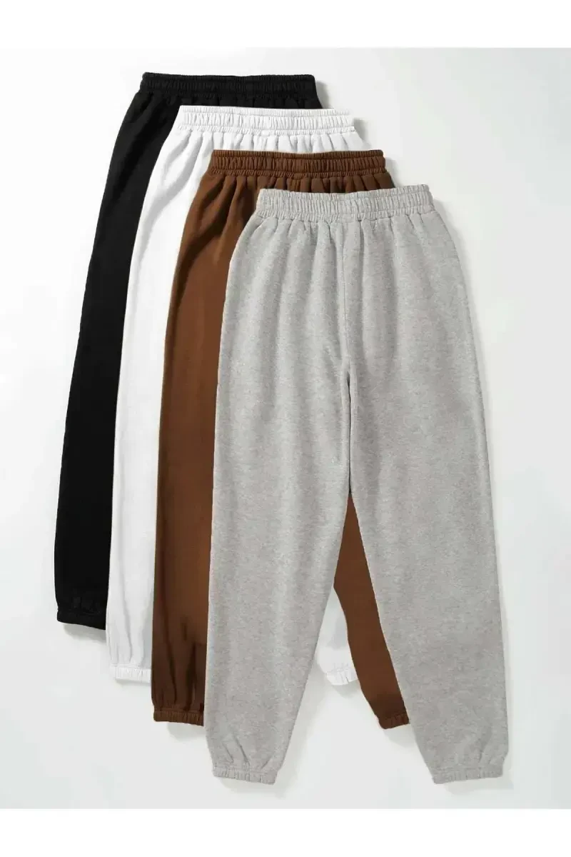 4'lü Basic Eşofman Altı: Siyah, Beyaz, Kahve, Gri Jogger Seti | Yüksek Bel, Lastik Paça