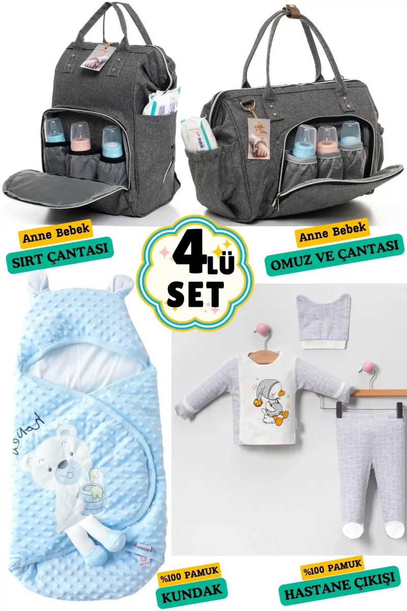 4’li Katta Tug‘ilish Seti (KASALXONADAN CHIQISH, CHAQALOQLARNI PARVARISH SIRT VA YELKA SUMKASI, O‘RAM)-QULRANG