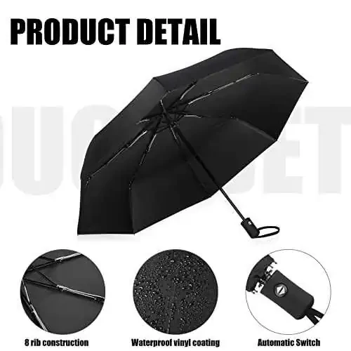 - 8 Ribs for Durability: Its 8 strong ribs make it windproof and resistant to breakage. It keeps you dry even in heavy rain and wind.