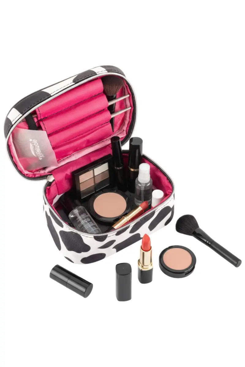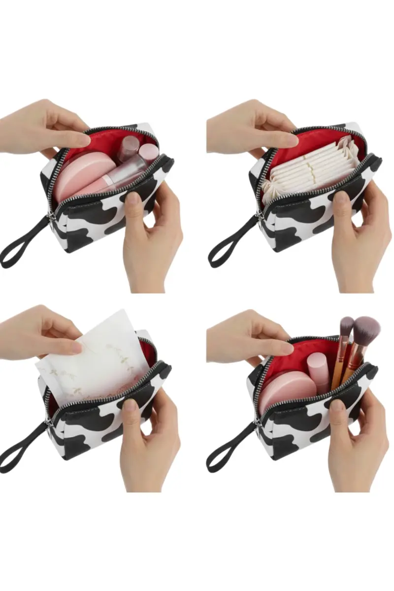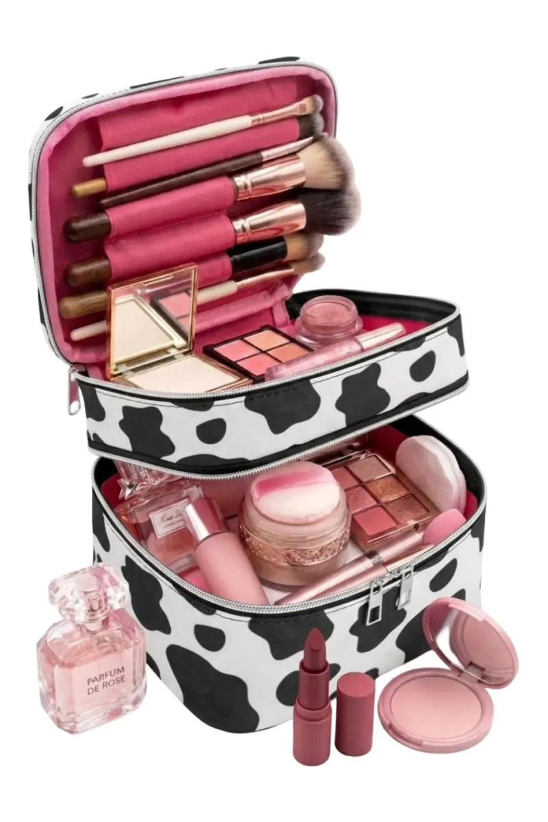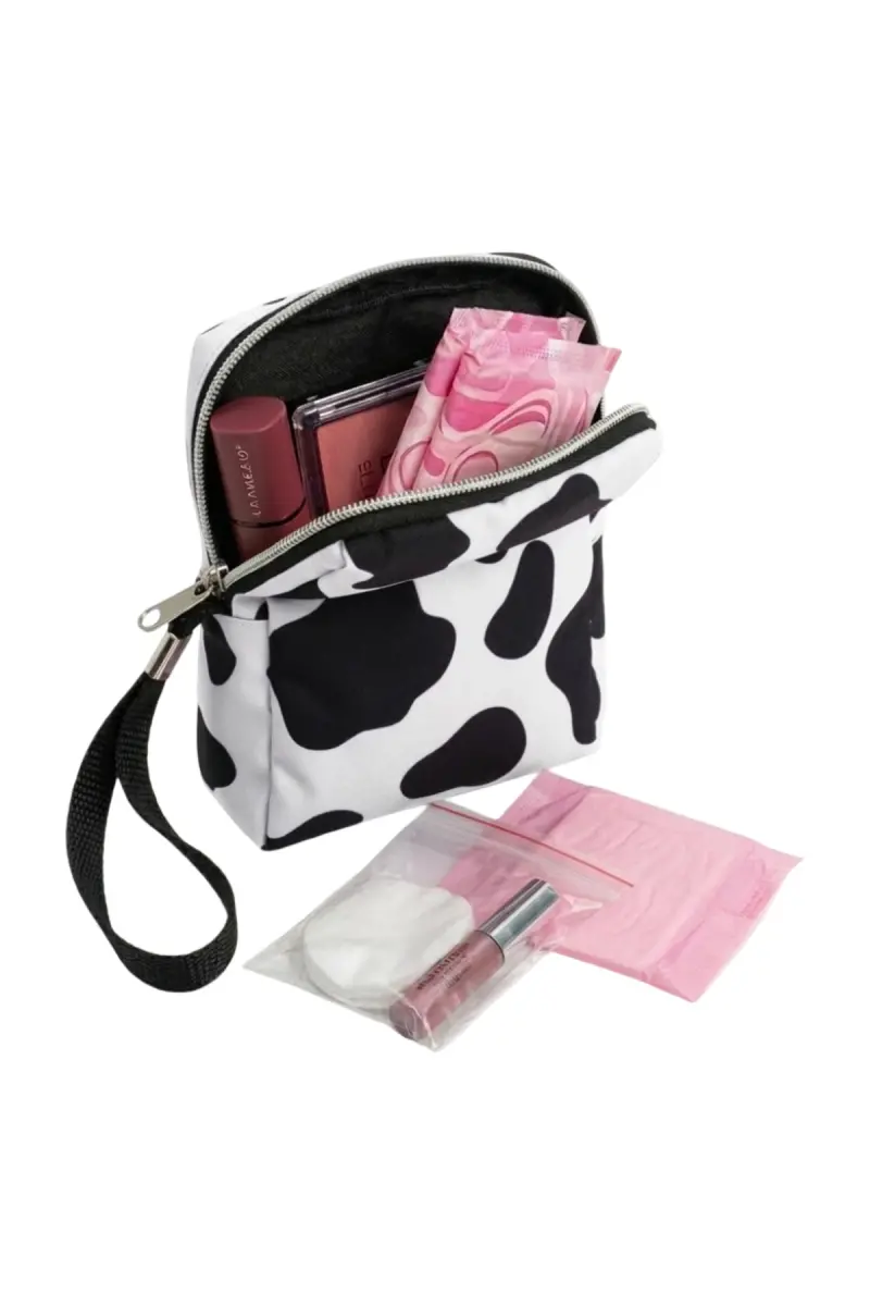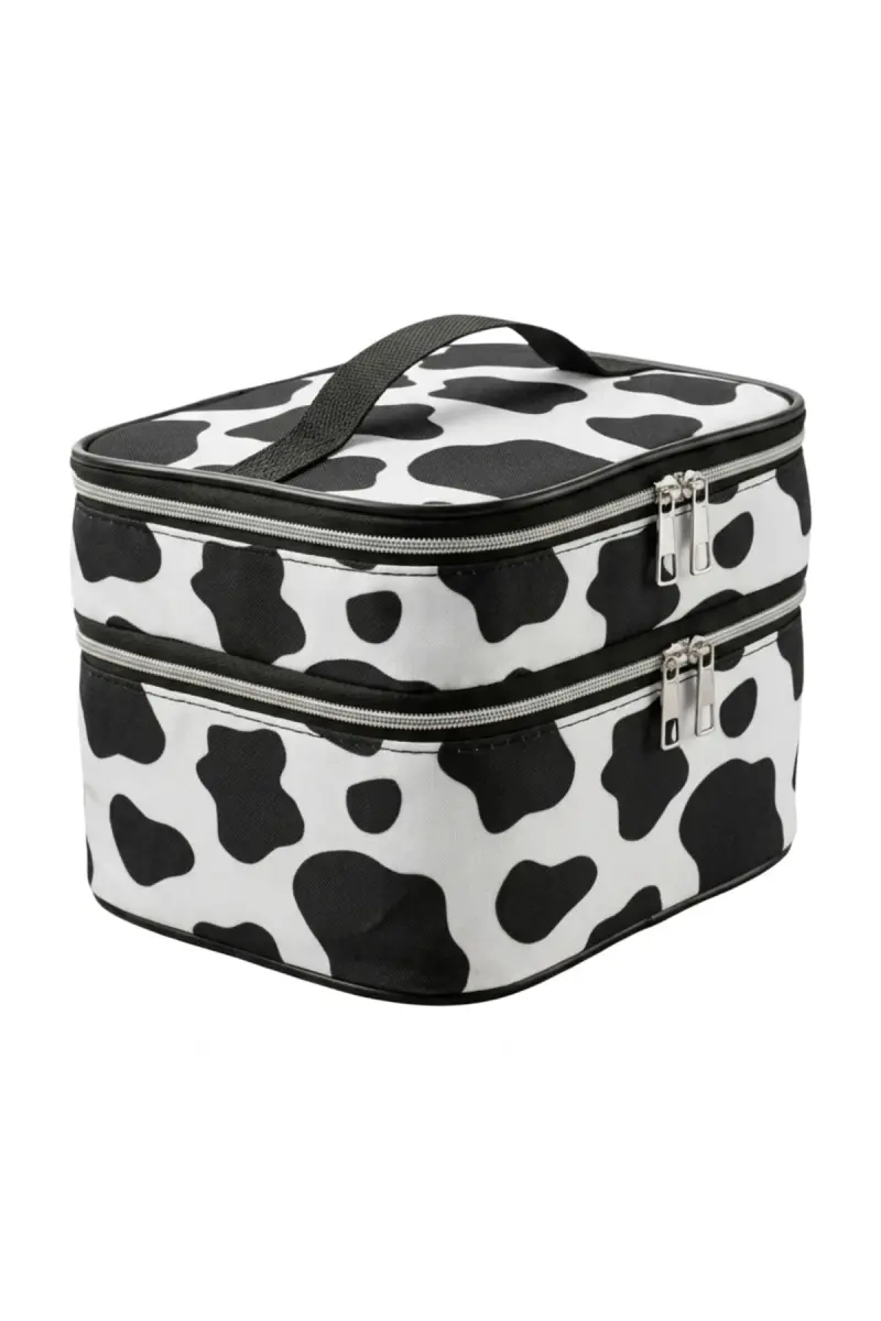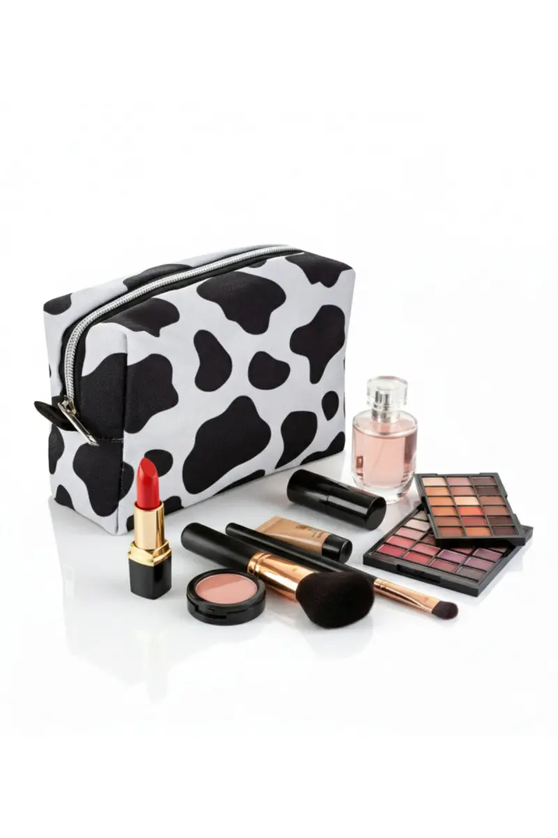 4’lü Set Makyaj ve Kozmetik Seyahat Çantası - Su Geçirmez Düzenleyici Valiz İçi Organizer-İnek Desenli