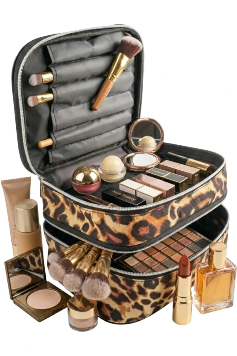 Bu ürün NAMLI ÇANTA tarafından gönderilecektir.Kampanya fiyatından satılmak üzere 50 adetten fazla stok sunulmuştur.Bir ürün, birden fazla satıcı tarafından satılabilir. Birden fazla satıcı tarafından satışa sunulan ürünlerin satıcıları ürün için belirledikleri fiyata, satıcı puanlarına, teslimat statülerine, ürünlerdeki promosyonlara, kargonun bedava olup olmamasına ve ürünlerin hızlı teslimat ile teslim edilip edilememesine, ürünlerin stok ve kategorileri bilgilerine göre sıralanmaktadır.Bu üründen en fazla 20 adet sipariş verilebilir. 20 adedin üzerindeki siparişleri Trendyol iptal etme hakkını saklı tutar. Belirlenen bu limit kurumsal siparişlerde geçerli olmayıp, kurumsal siparişler için farklı limitler belirlenebilmektedir.15 gün içinde ücretsiz iade. Detaylı bilgi için [page="return_conditions"]tıklayın .- Seyahatlerinizde makyaj ve kozmetik ürünlerinizi düzenli ve kolayca erişilebilir tutmak için ideal bir çözüm.- Su geçirmez özelliği sayesinde içeriğinizi nem ve sıvı dökülmelerine karşı korur, güvenli bir seyahat deneyimi sunar.- Valiz içi organizer olarak tasarlanmıştırvalizinizi daha düzenli ve ferah tutmanızı sağlar.- Leopar deseni ve kahverengi tonuyla şık ve modern bir görünüm sunar, seyahat stilinizi tamamlar.- Türkiye'de üretilmiştir, yerel üretim kalitesini ve dayanıklılığını yansıtır.