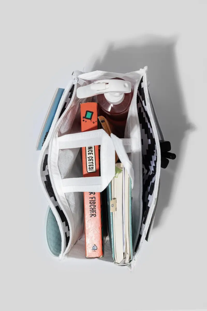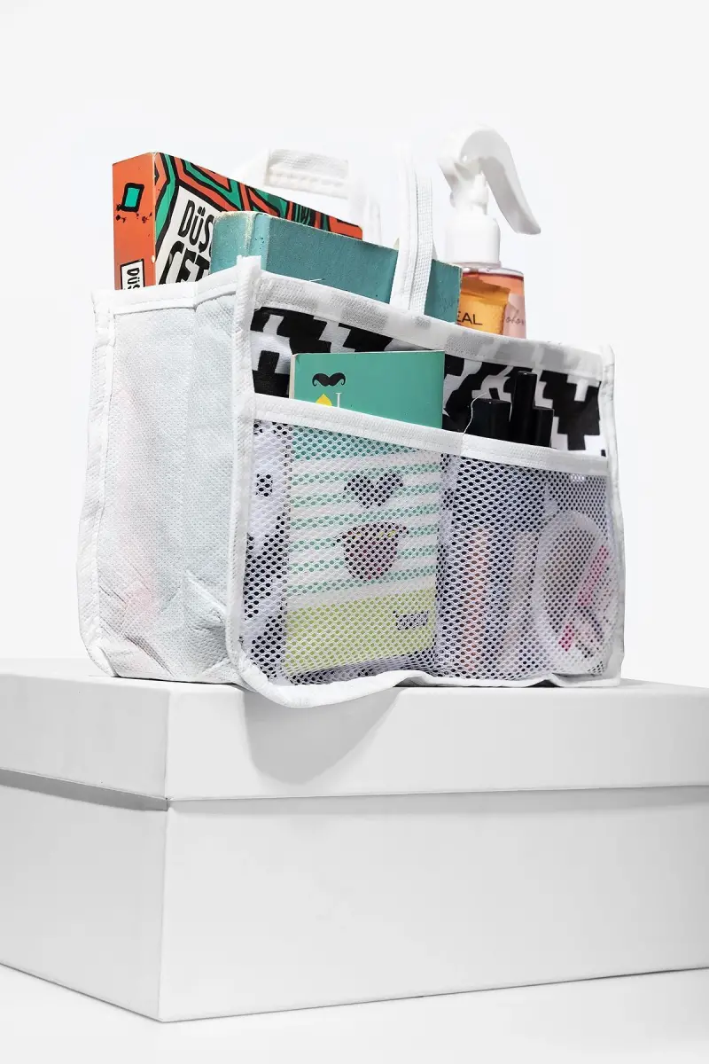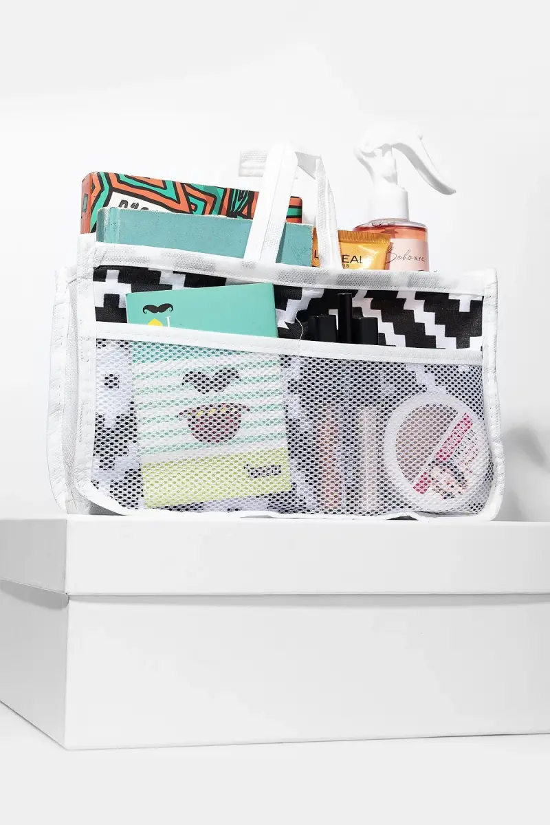 5 Bölmeli Beyaz - Siyah Desenli Bakım Seyahat Makyaj Kozmetik Organizer Çanta-Siyah