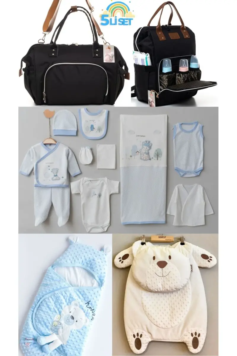 Those first moments when your baby says hello to the world are unforgettable memories. The 5-Piece Newborn Set, designed to make these special moments even more beautiful and easier, brings together everything you need. The 10-piece hospital exit set in the set includes your baby's first clothes, while the peanut swaddle ensures your baby feels comfortable and safe. The changing pad provides a hygienic environment when changing your baby's diaper, while the baby care shoulder and backpack helps you carry all your belongings in an organized manner. This set, which attracts attention with its stylish and modern black design, prioritizes the comfort of both mother and baby. This set, which is made of high-quality materials, does not harm your baby's sensitive skin and offers long-lasting use. This set, which will meet your baby's basic needs from the moment they leave the hospital, will also provide great convenience in daily use. Designed with your baby's health and comfort in mind, this set is a perfect start for new parents. This birth set, which is both stylish and useful, will be your best helper to accompany you in the first months you spend with your baby. Each piece in its content has been carefully selected to ensure your baby's comfort and safety. This set includes all the basic products you will need from your baby's first days, so it saves you the trouble of searching for separate products. This set, which will support you in the first steps of your motherhood journey, will also be with you during your baby's growth process. This set, which carries the elegance of black, offers both stylish and practical use, making every moment you spend with your baby more enjoyable. All products that will come into contact with your baby's sensitive skin have been dermatologically tested and approved. In this way, you can be sure that it does not contain any substances that will harm your baby's health. This set, which includes everything from your baby's first clothes to care products, is designed to make the lives of new parents easier.