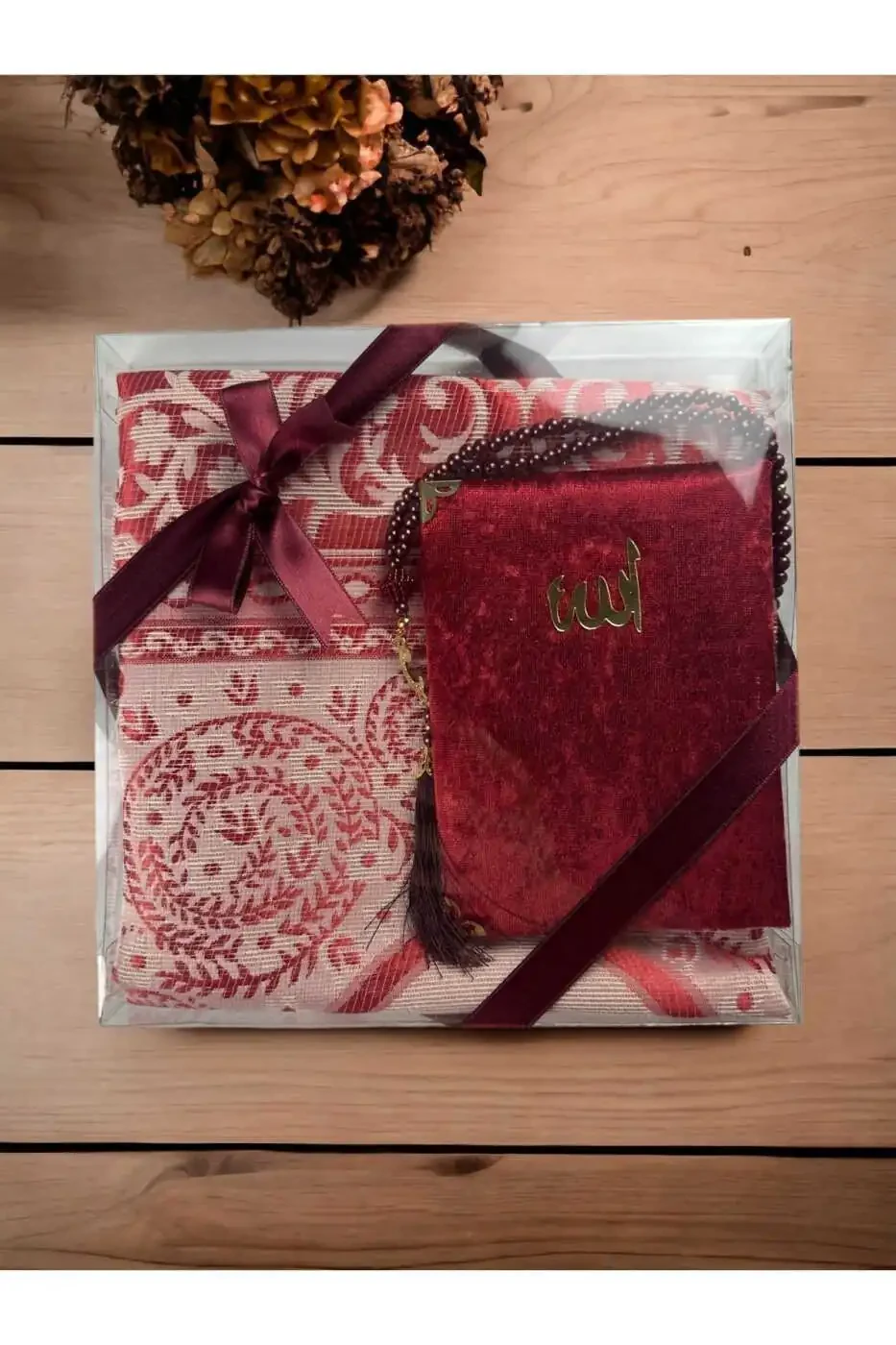 If you want to make your loved ones happy and give them an unforgettable gift, you can choose the 5-Piece Maulud, Bohca, Umrah Gift Luxury Prayer Rug Set.