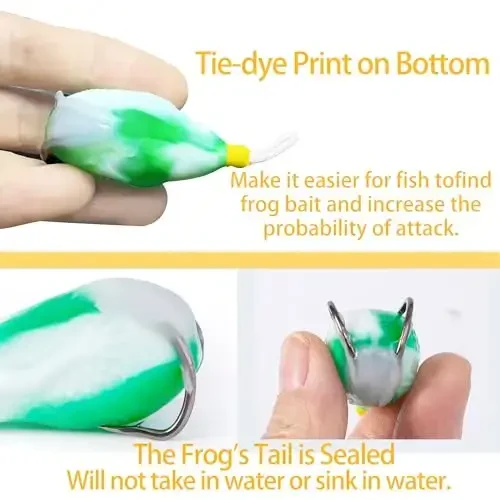 Рекомендуется очищать и сушить лягушачьи приманки после использования, чтобы сохранить их водонепроницаемые свойства. Когда рыба клюет, резко потяните, чтобы крючок хорошо вонзился. Коробка для приманок не только позволяет хранить приманки в порядке, но и облегчает их транспортировку. Поэкспериментировав с различными вариантами цвета, вы сможете найти цвет, который больше всего предпочитает рыба в вашем районе. Конструкция без зацепов сводит к минимуму риск зацепления приманок при использовании их в травянистых местах, но все же следует соблюдать осторожность. Благодаря высококачественным материалам эти приманки прослужат долго и принесут вам много успешных рыбалок.