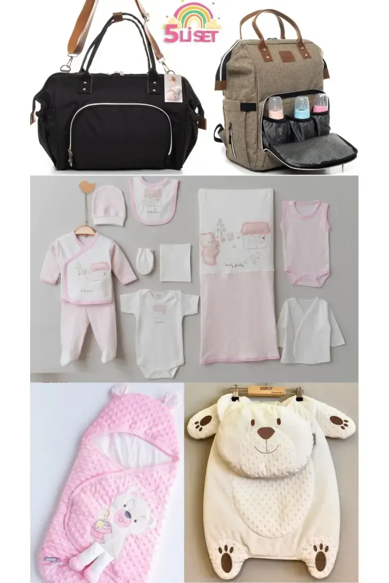 5'li Doğum Seti (10 Parça Hastane Çıkışı, Nohut Kundak, Altaçma, Bebek Bakım Omuz ve Sırt Çantası) - BejBebek bekleyen anne babalar için en özel anlardan biri, minik yavrularının dünyaya gelişine hazırlanmaktır. İşte bu heyecan dolu süreçte, ihtiyaç duyacağınız her şeyi bir araya getiren 5'li Doğum Seti ile tanışın! Bebeğinizin ilk günlerinden itibaren kullanabileceğiniz, özenle seçilmiş ve birbiriyle uyumlu parçalardan oluşan bu set, hem sizin hem de bebeğinizin konforunu ön planda tutar. Bej renginin sıcaklığı ve şıklığı ile tasarlanan bu set, hastane çıkışından günlük kullanıma kadar her an yanınızda olacak.Bu benzersiz setin içeriğinde neler mi var? Öncelikle, bebeğinizin hassas cildine zarar vermeyen, %100 pamuktan üretilmiş 10 parça hastane çıkışı seti bulunuyor. Bu set, bebeğinizin ilk kıyafetlerini içerirken, aynı zamanda pratik kullanımıyla da size kolaylık sağlar. Minik bedenini sıcacık tutacak, yumuşacık dokusuyla bebeğinizin rahatını sağlayacak bir nohut kundak da setin vazgeçilmez bir parçası. Nohut kundak, bebeğinizin güvenli ve huzurlu bir uyku deneyimi yaşamasını destekler.Setin bir diğer önemli parçası ise, pratik altaçma minderi. Bebeğinizin altını değiştirirken hijyenik ve konforlu bir alan yaratmanıza yardımcı olur. Katlanabilir özelliği sayesinde kolayca taşınabilir ve her yerde kullanılabilir. Ayrıca, bebeğinizin tüm ihtiyaçlarını yanınızda taşıyabileceğiniz, şık ve kullanışlı bir bebek bakım omuz ve sırt çantası da bu sette yer alıyor. Geniş iç hacmi ve özel bölmeleri sayesinde biberonlardan bezi, ıslak mendilden yedek kıyafetlere kadar her şeyi düzenli bir şekilde saklayabilirsiniz. Hem omuzda hem de sırtta taşınabilme özelliği sayesinde size maksimum konfor sunar.5'li Doğum Seti, sadece ihtiyaçlarınızı karşılamakla kalmaz, aynı zamanda bebeğinizin sağlığına da özen gösterir. Tüm ürünler, bebeğinizin hassas cildine uygun, antialerjik ve doğal malzemelerden üretilmiştir. Bej renginin sakinleştirici etkisiyle tasarlanan bu set, bebeğinizin ilk günlerinin huzurlu ve mutlu geçmesine katkıda bulunur. Bu set, doğum öncesi hazırlıklarınızın en önemli parçalarından biri olacak ve size büyük bir kolaylık sağlayacaktır. Bebeğinizle birlikte geçireceğiniz bu özel zamanlarda, ihtiyacınız olan her şeyi bir arada bulabileceğiniz 5'li Doğum Seti ile rahat bir nefes alın ve bebeğinizin tadını çıkarın! Unutmayın, bu set sadece bir ürün değil, aynı zamanda bebeğinizin ilk günlerine eşlik edecek bir sevgi ve özen ifadesidir.