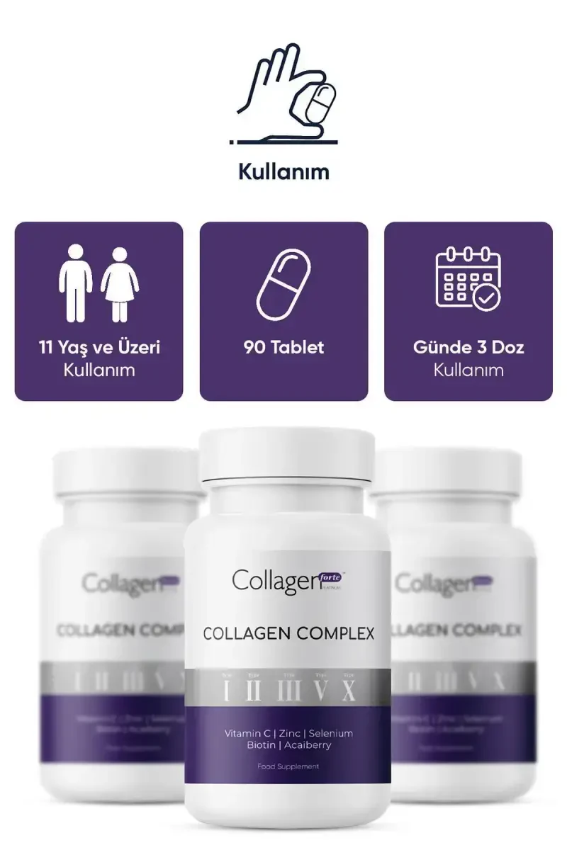 5 Type Collagen Complex Type 1,2,3,5 and Type 10 Biotin is a comprehensive nutritional supplement specially formulated to meet your body's collagen needs and support your overall health. This unique formula combines five different types of collagen (Type 1, 2, 3, 5 and 10), providing a wide range of benefits from improving joint health without increasing skin elasticity, to strengthening hair and nails without increasing bone density. The biotin in it is an important vitamin that supports hair and nail health.Collagen is the most abundant protein in our body and forms the structure of our skin, bones, muscles, tendons and ligaments. As we age, our body's collagen production decreases, which can lead to wrinkles, joint pain and other signs of aging. 5 Type Collagen Complex helps reduce these symptoms and improve your overall health by providing the collagen your body needs.Each collagen type in the formula of this product has different benefits:* **Type 1 Collagen:** Increases the elasticity and firmness of the skin, reduces the appearance of wrinkles. It also supports the structure of bones and tendons.* **Type 2 Collagen:** It is the main component of joint cartilage and supports joint health. It helps reduce joint pain and stiffness.* **Type 3 Collagen:** Supports the structure of the skin, blood vessels and internal organs. Increases skin elasticity and accelerates wound healing.* **Type 5 Collagen:** Supports the structure of hair and nails. It helps hair become stronger and shinier and prevents nails from breaking.* **Type 10 Collagen:** Supports the health of bones and joints. Promotes cartilage formation and reduces joint pain.Biotin is a vitamin that belongs to the B vitamin family and is important for hair, skin and nail health. Biotin deficiency can lead to hair loss, nail breakage and skin problems. Thanks to the biotin in this product, it helps your hair become stronger and shinier, prevent your nails from breaking, and make your skin look healthier.5 Type Collagen Complex Type 1,2,3,5 and Type 10 Biotin contains hydrolyzed collagen peptides that are easily absorbed and digested. This allows your body to use collagen more effectively. Our product does not contain additives, gluten and lactose. This supplement, which you can easily add to your daily nutrition routine, is an ideal choice to support your overall health and reduce the signs of aging. Choose 5 Type Collagen Complex for a healthy and youthful life.