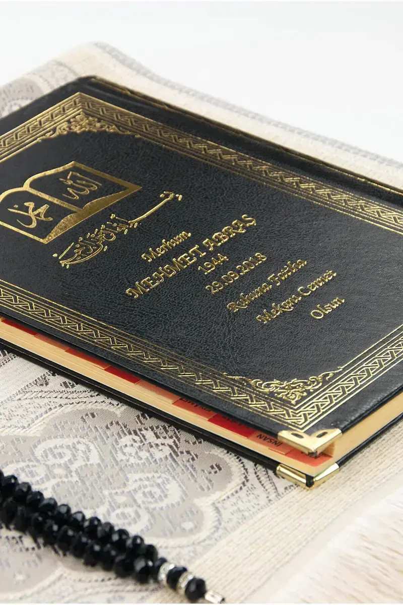 Yosin kitoblariga bosib chiqariladigan ism yoki xabar ma'lumotini buyurtma berish vaqtida ko'rsatishingiz kerak. Joynamoz o'lchamlari standart namoz joynamozi o'lchamlaridadir. Billur tasbeh 99 ta bo'lib, imomasi bilan birga taxminan 30 sm uzunlikdadir. Sovg'a qutisi, mahsulotlarning shikastlanmasdan tashilishini ta'minlaydigan tarzda ishlab chiqilgan. Ommaviy buyurtmalaringiz uchun iltimos, biz bilan bog'laning. Mahsulotlarimiz ehtiyotkorlik bilan tayyorlanadi va yukga topshiriladi.