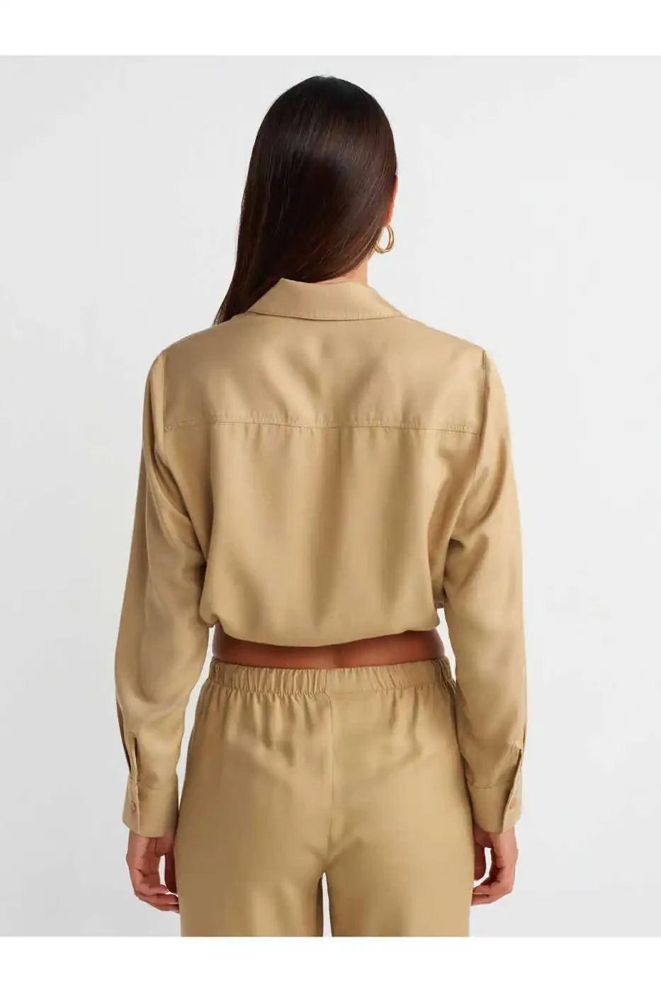 50488 Cargo Pocket Blouse - Camel | Stylish and Practical