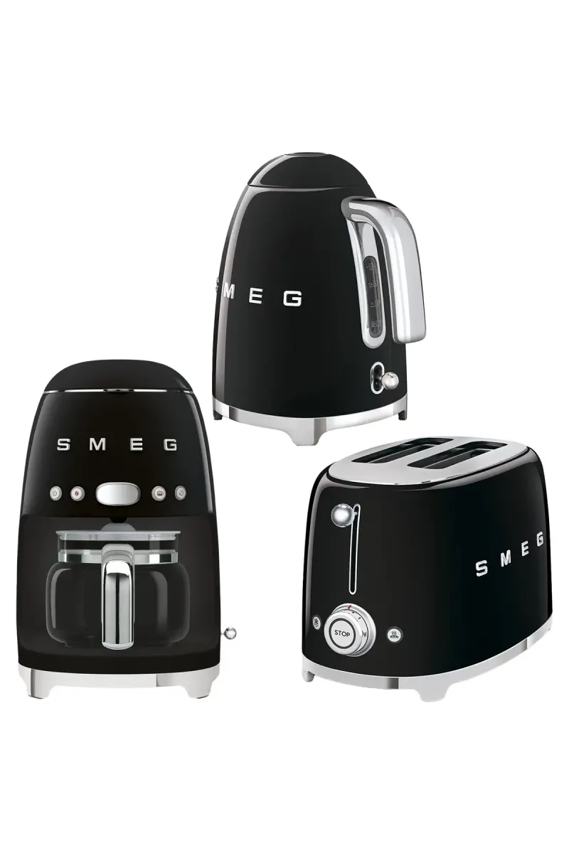 50's Style Чёрный Чайник - Тостер 1x2 И Фильтр Кофеварка Набор-Чёрный